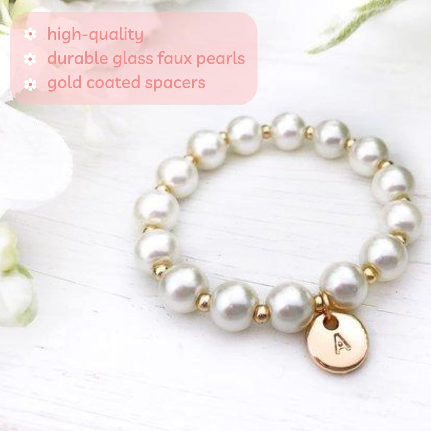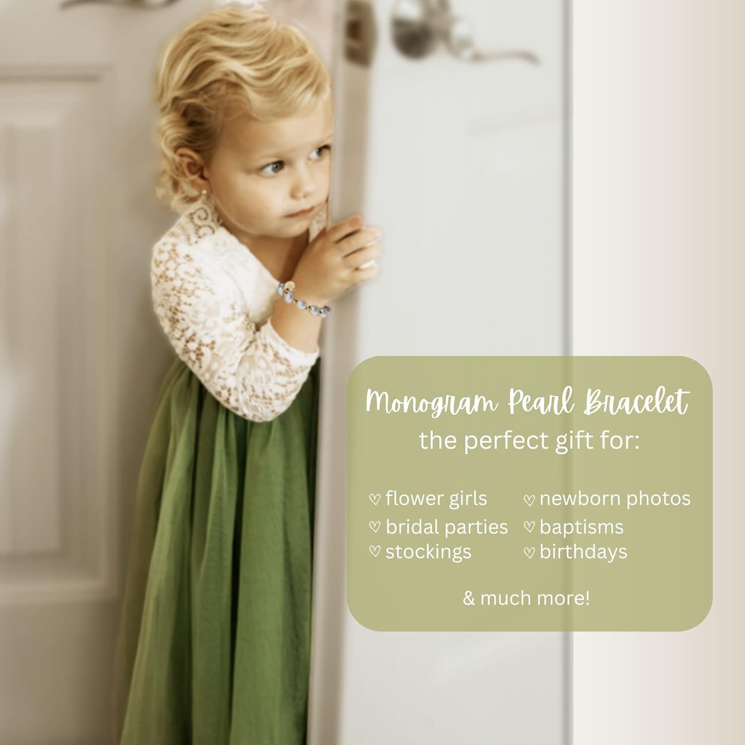 Baby Girls Monogrammed Pearl Gold Stretch Bracelet