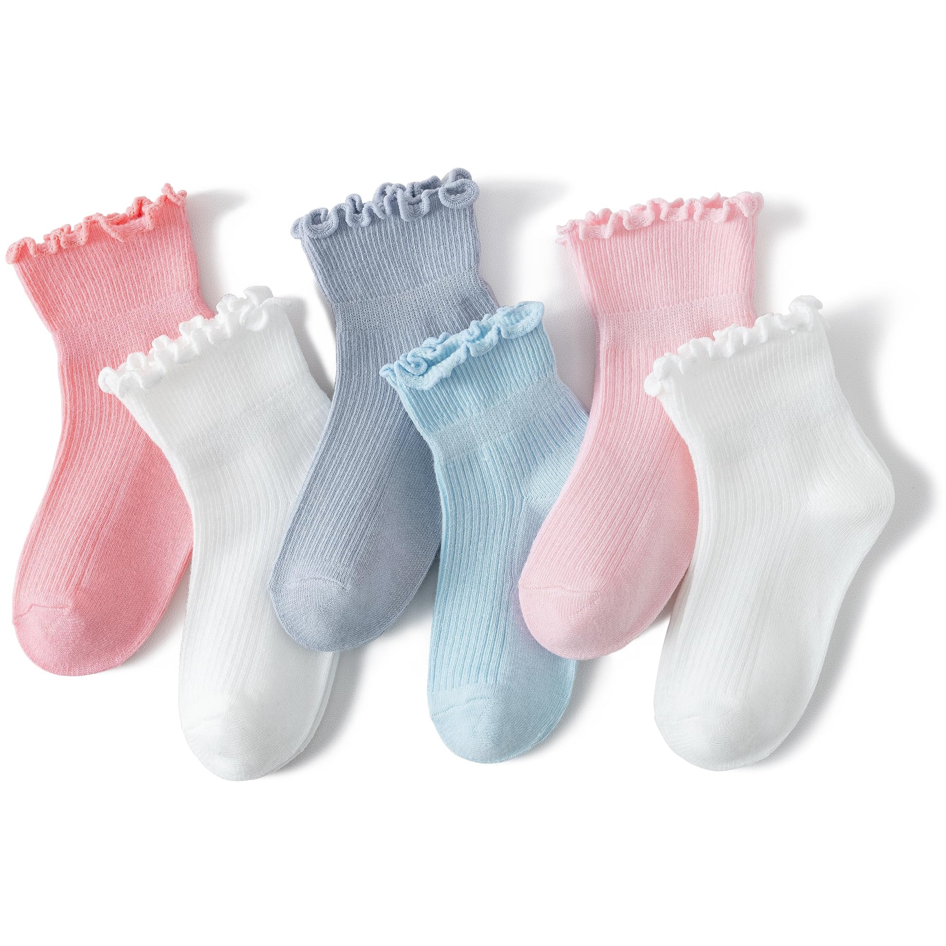 Baby Girls Ruffle Socks Toddler Girls Frilly Dress Crew Socks for 6-12 Months 1-3 Years 3-5 Years 6 Pack