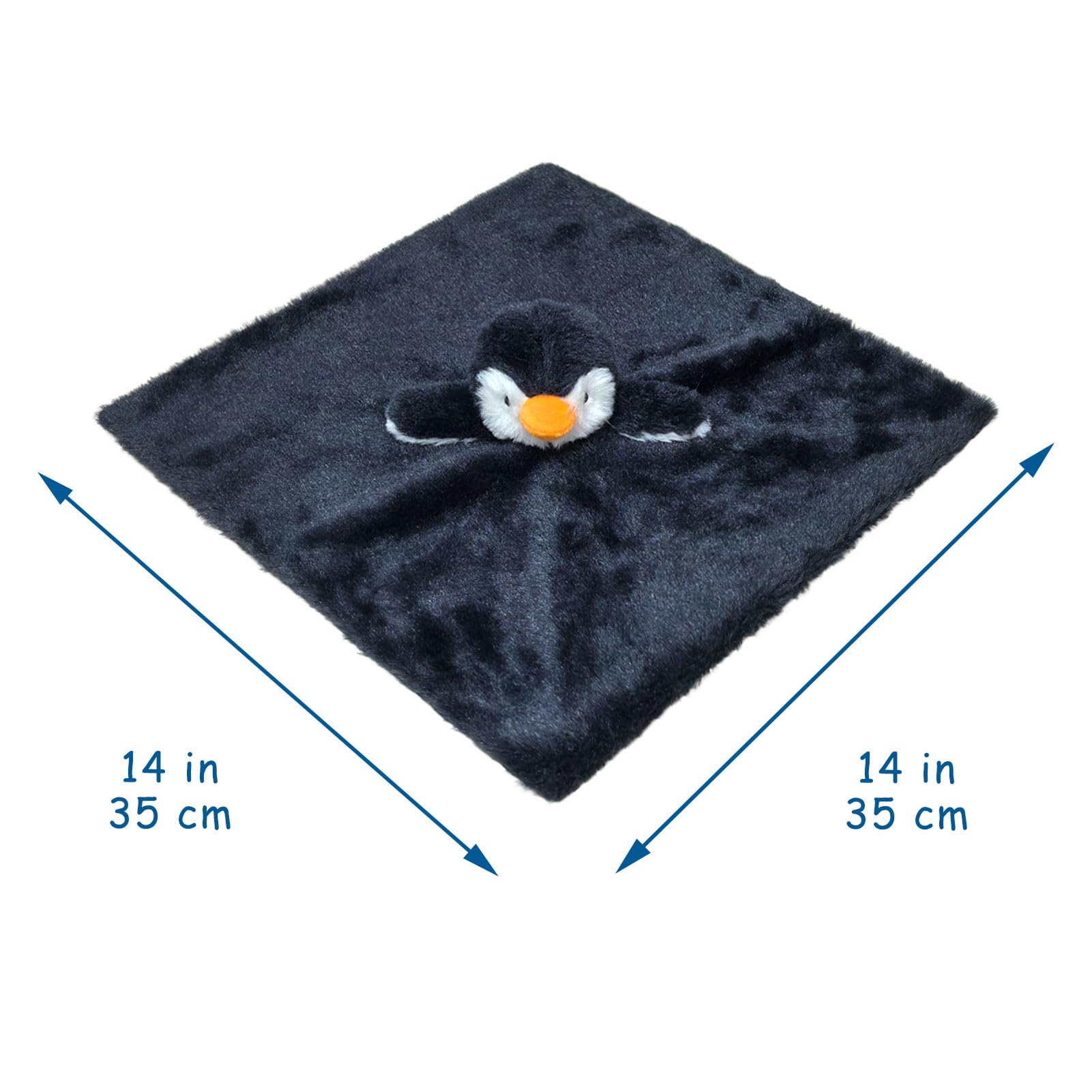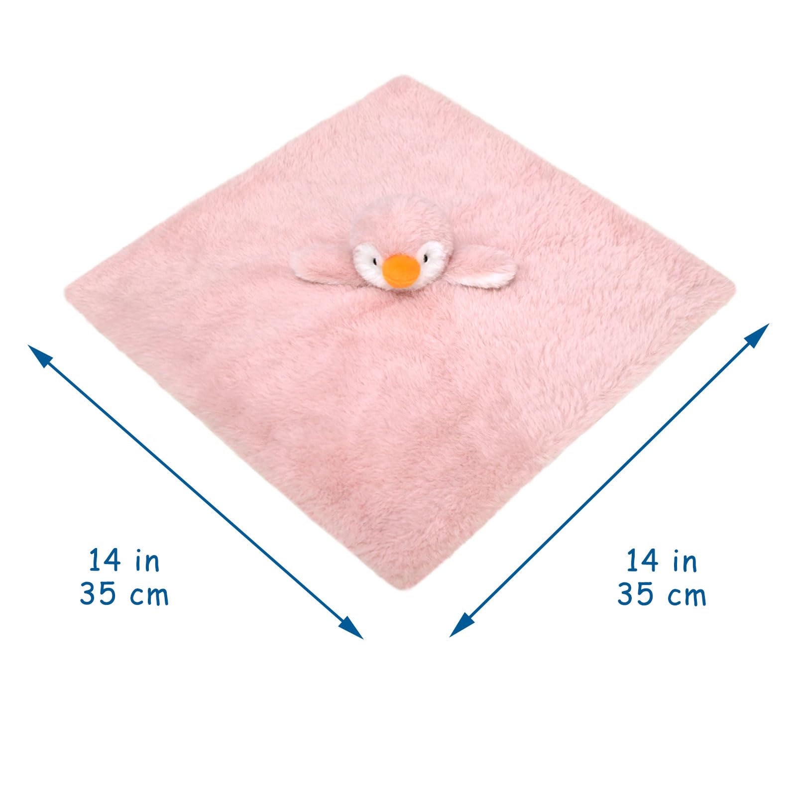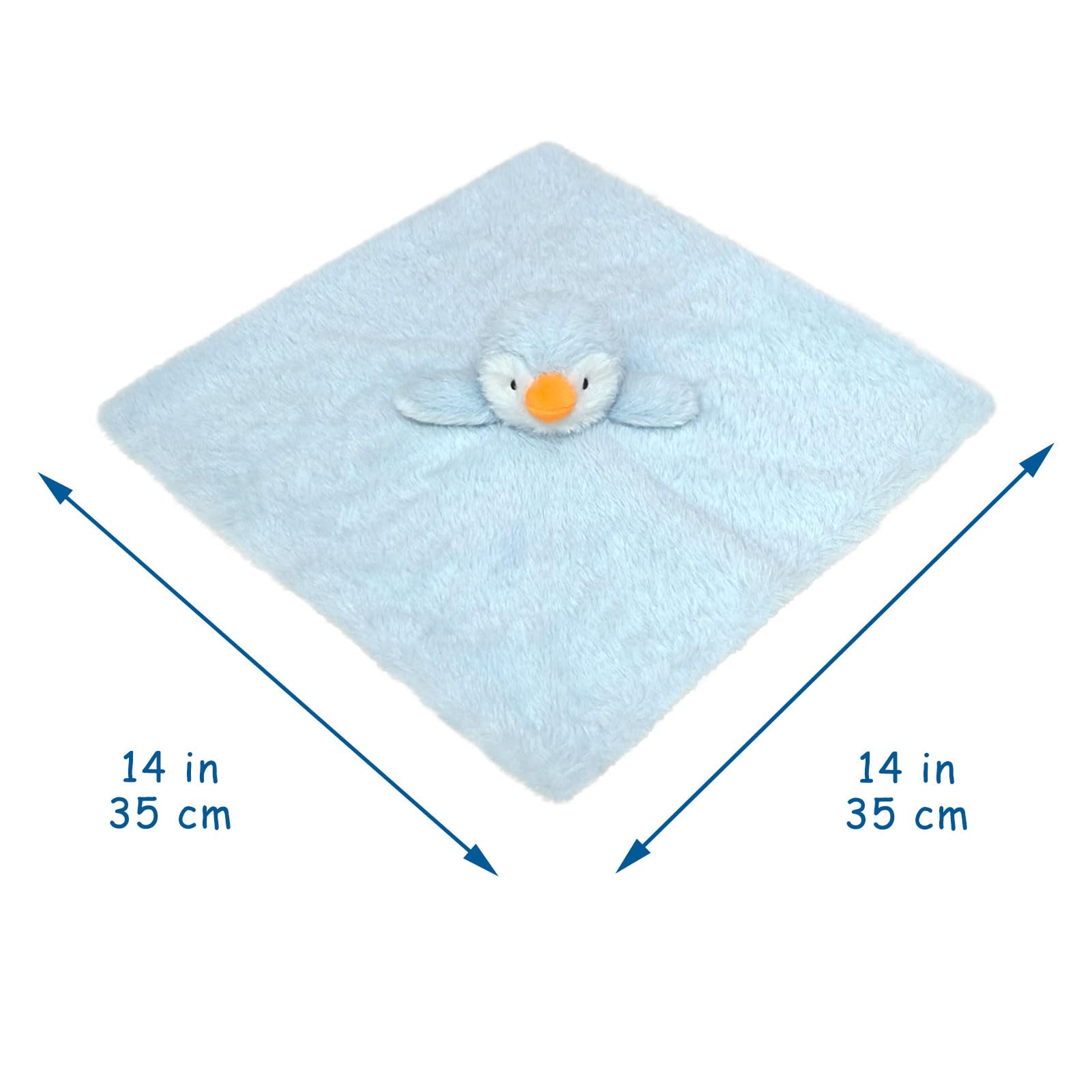 Doindute penguin security blanket has the perfect size for newborns babies, length 14 inches, easy to hold and play. Every baby deserves a fun lovey blanket.