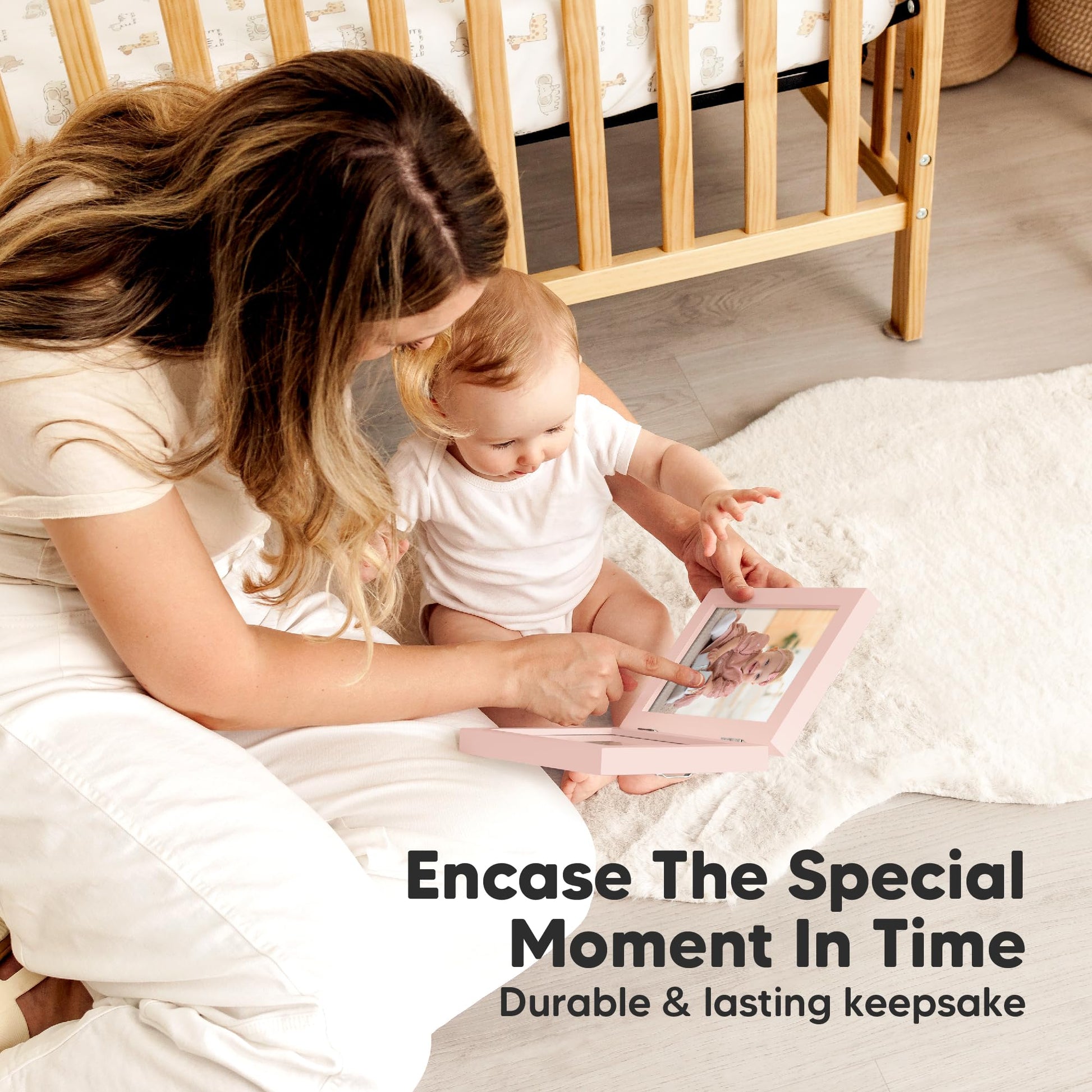- Charming Keepsake - Timeless, modern, charming. The Rune Baby Keepsake Picture Frame, with its unique bi-fold design is perfect for wall or tabletop. This gender-neutral piece for boys & girls adds a touch of cuteness and liveliness to your nursery.