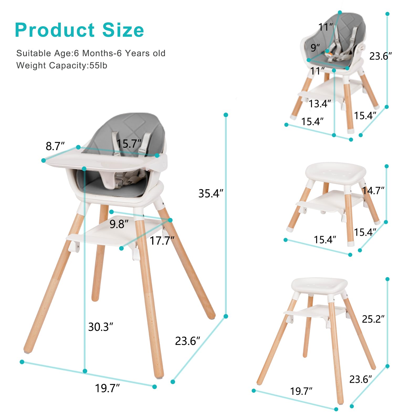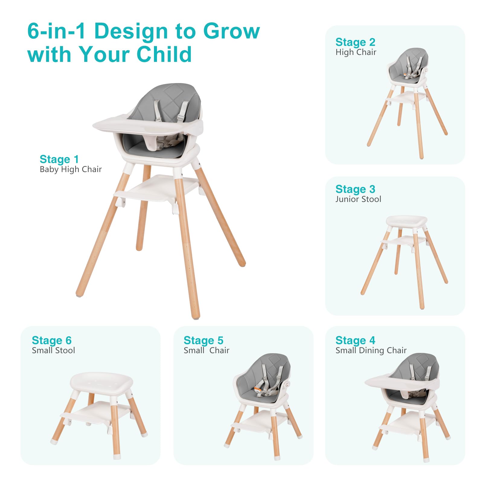 - 【6 in 1 Baby High Chair】Komcot New upgraded baby highchairs with 6 modes: full size baby high chair, small dining chair, toddler chair with 2 heights, counter-height stool or small stool. It is designed to help your toddler in all growing stages. Suitable age: 6 months - 6 years old.