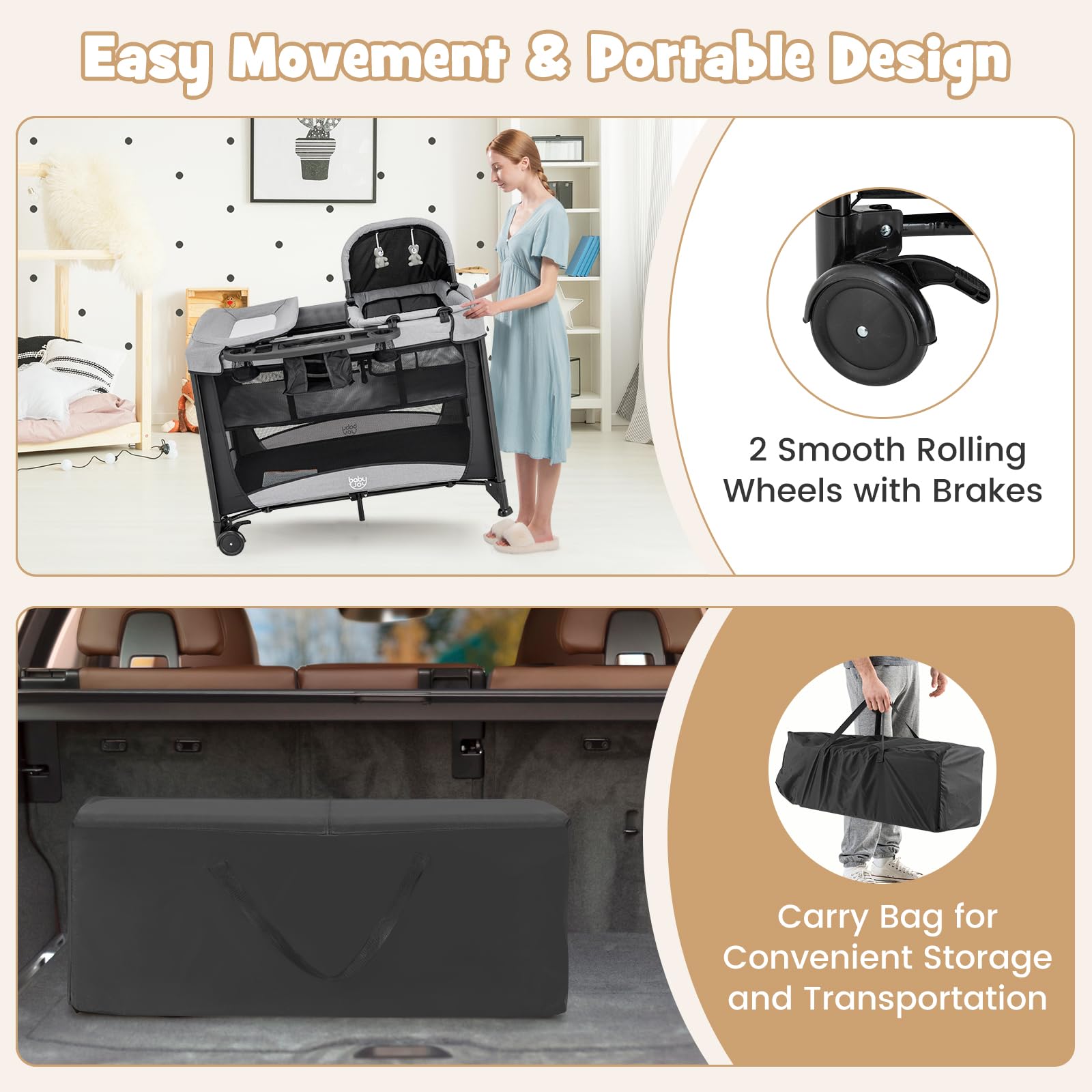 BABY JOY 3 in 1 Portable Pack and Play with Bassinet, Convertible Baby Travel...