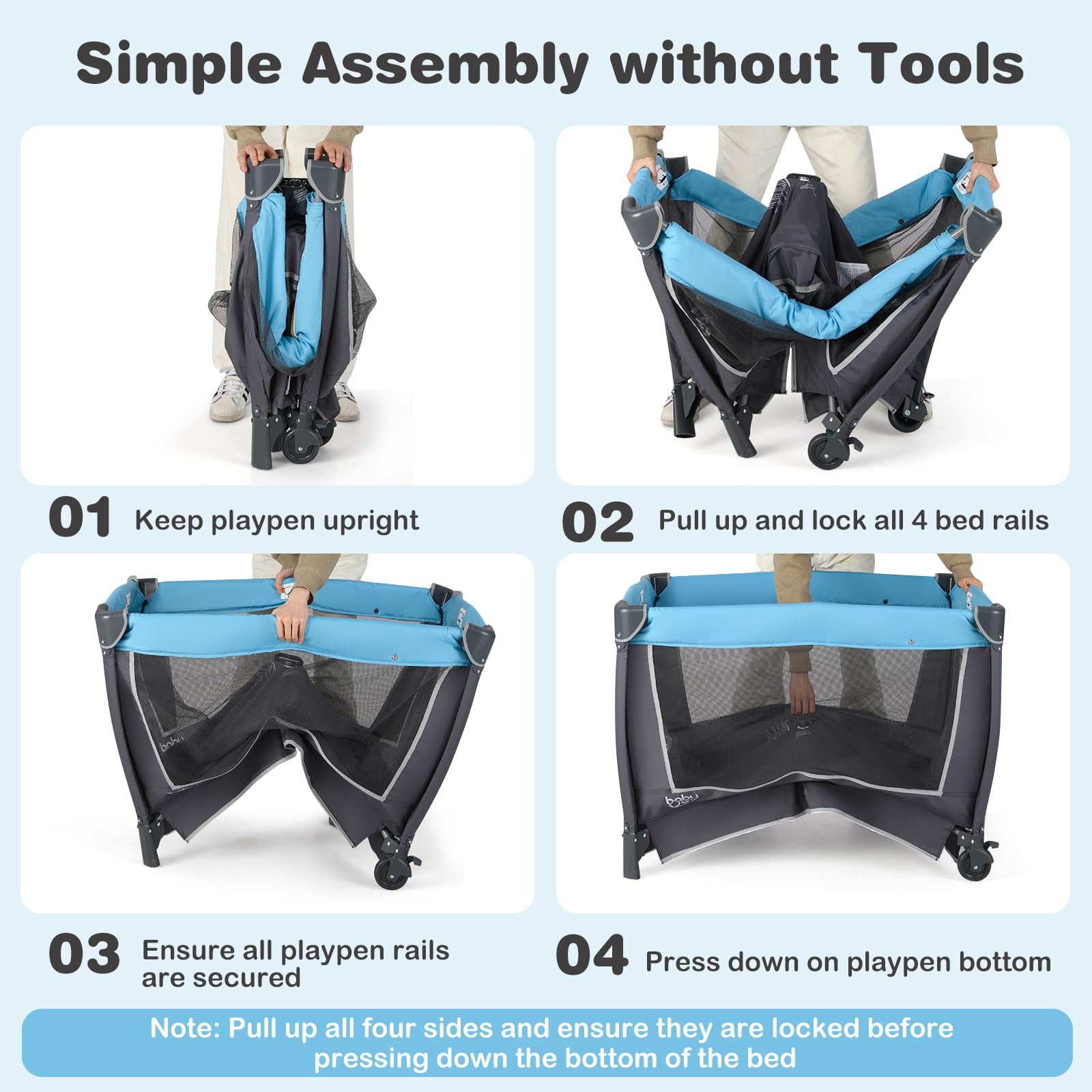 - 【Skin-Friendly Materials & Safe Details】 Our bed are made of breathable and skin-friendly fabrics, so babies can use them at ease.7-point supporting structure on the bottom comes with more steadiness. And the sturdy frame is made of iron tubes, which supports up to 33 lbs. Four round corners avoids bumping and scratching.