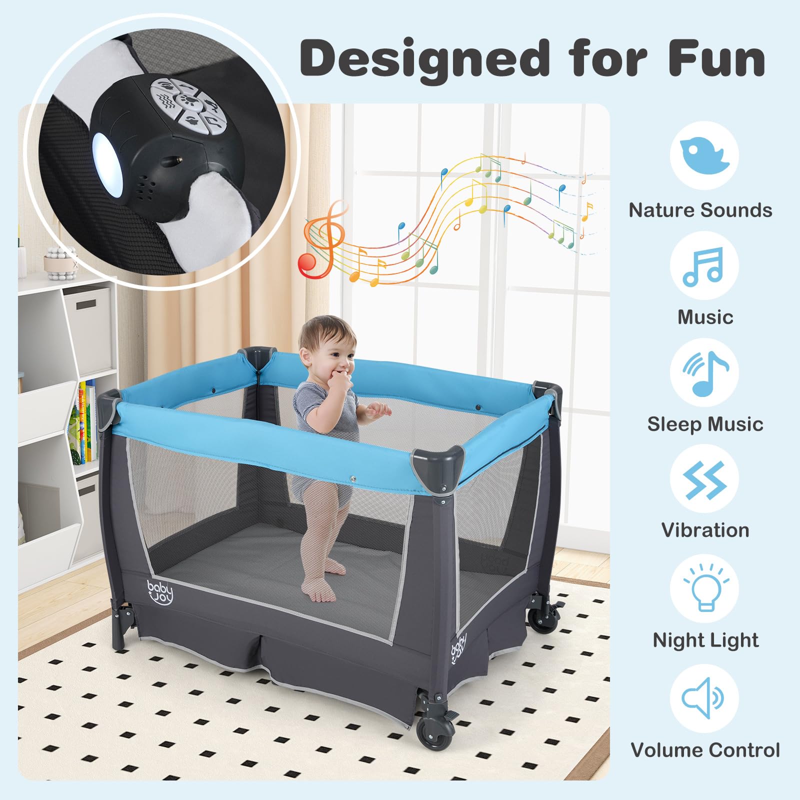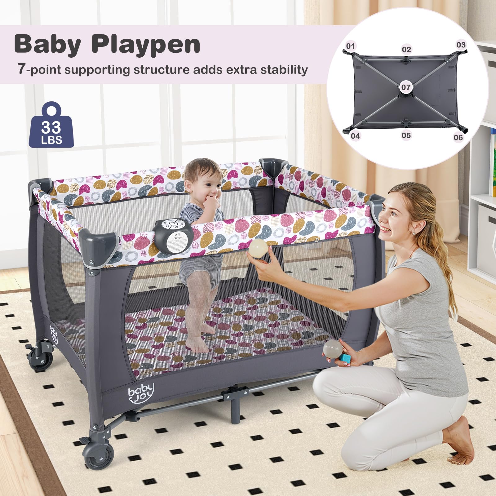 BABY JOY Portable Crib Baby Playard, Double Layer Pack and Play with Breathab...