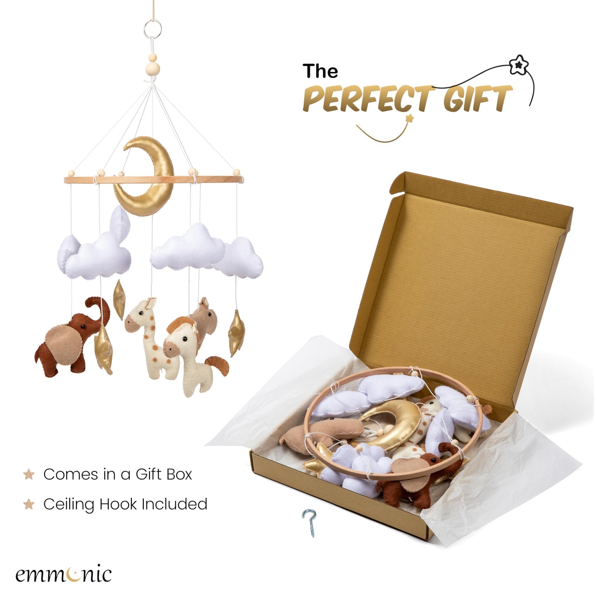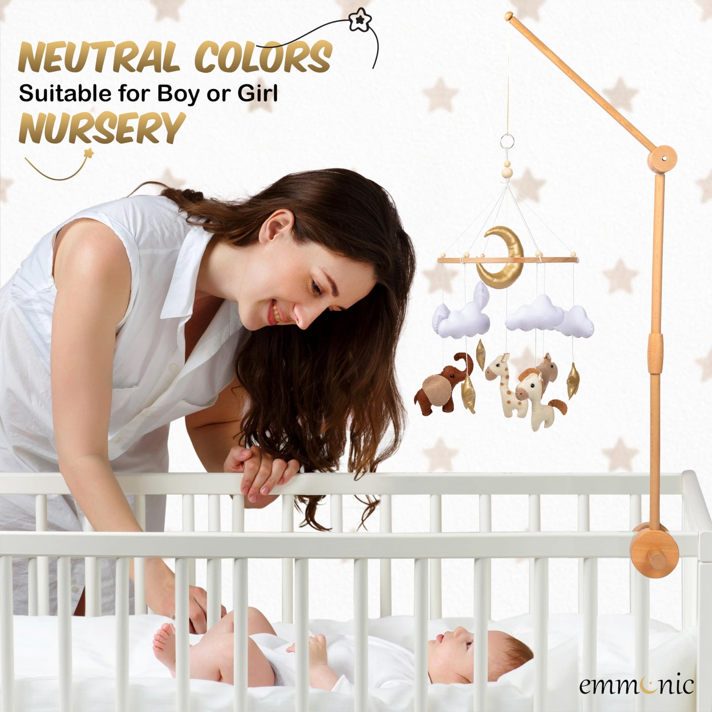 - Inspires Calm and Wonder: The soft, neutral tones of this nursery mobile gently engage your baby, fostering their sight and imagination without overstimulation. It’s designed to soothe baby to sleep while adding a lasting touch of elegance to your nursery’s decor.