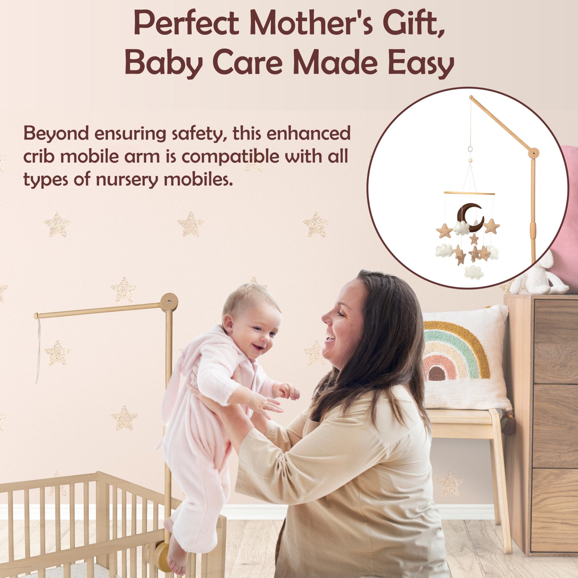 - Effortless Setup, Lasting Elegance: This crib mobile is designed for easy setup and adaptability. You can easily customize its length to fit your nursery, adding an aesthetically pleasing touch to your modern, boho nursery while making installation a breeze.