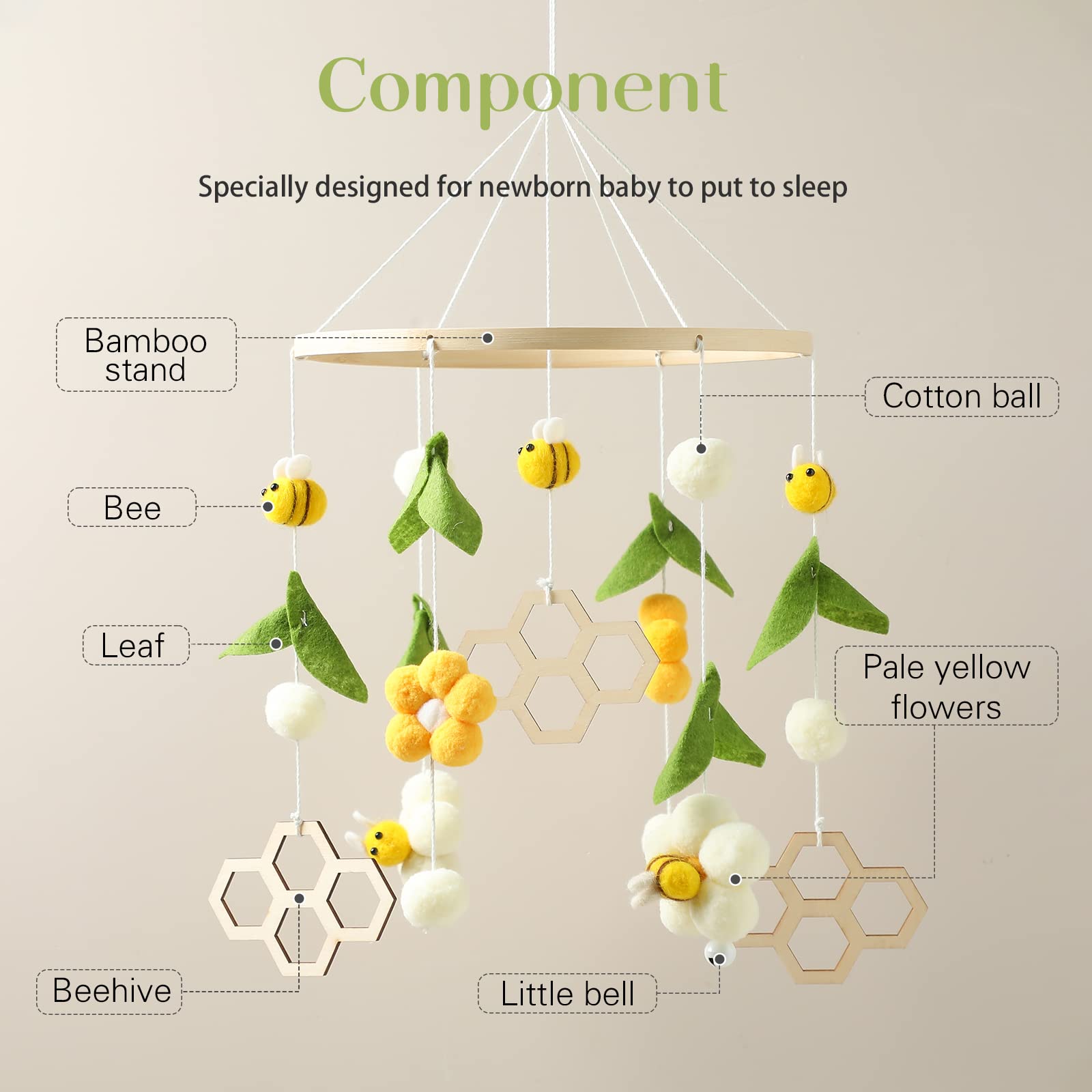 Baby Mobile for Crib, Nursery Mobile Decor, Bee Decoration for Infant, Soft Mobile for Boys and Girls