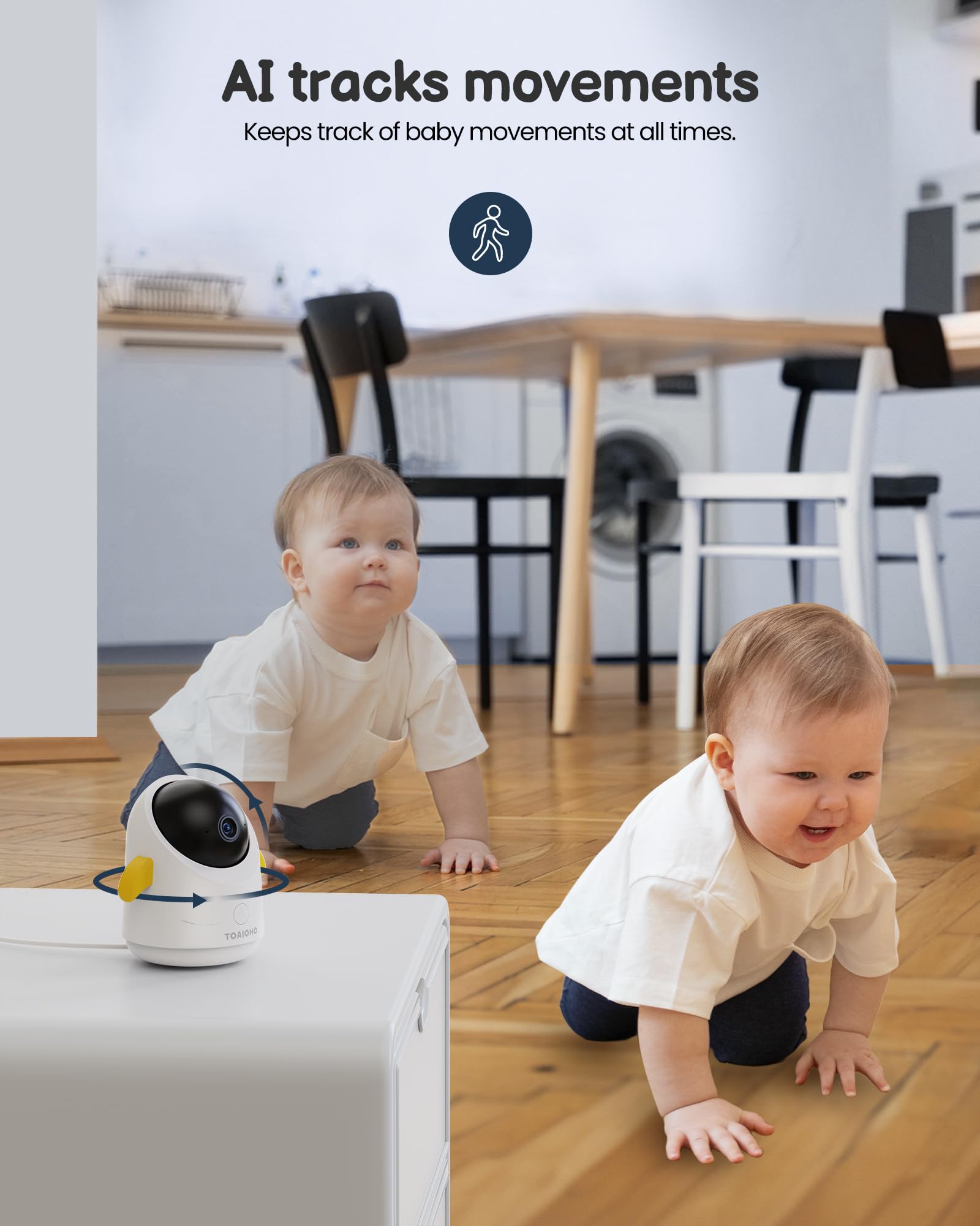 - Motion & Sound Detection: The video baby monitor comes with advanced motion and sound sensors. Whenever the baby camera detects your baby moving or crying, it will notify you through both the monitor and your smartphone. Even if you are busy cooking or doing the dishes, you can be there for your baby when they need you. Giving you peace of mind.