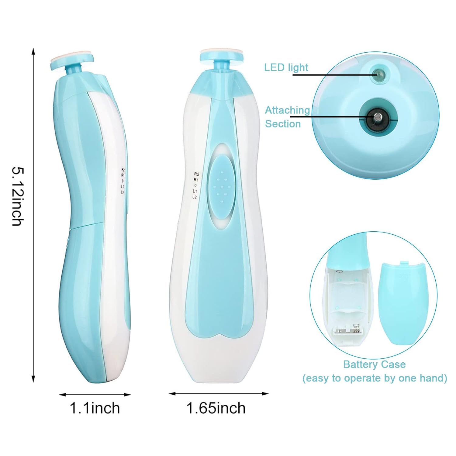 - [LED Light and Whisper Quite]:Equiped with a whisper quiet motor, our toddler nail clipper can work when baby sleeping without waking them up. And this baby nail timmer is bulif in soft led light, you can use it when in a dark light