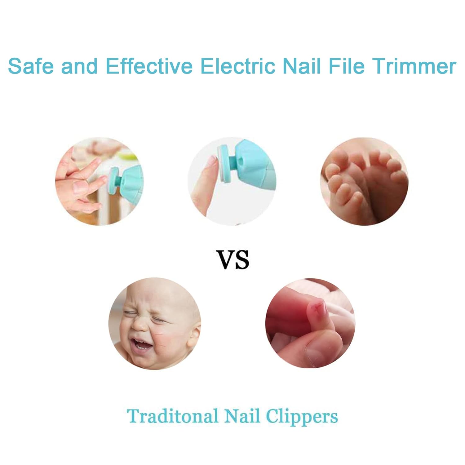 - [Safe Baby Nail Kit]:Our electric baby nail file is totally safe to trim and polish fingernails and toenails for baby.With specail design, it won't cause any demage cuticles or nail beds. It's safe and effective even for newborn