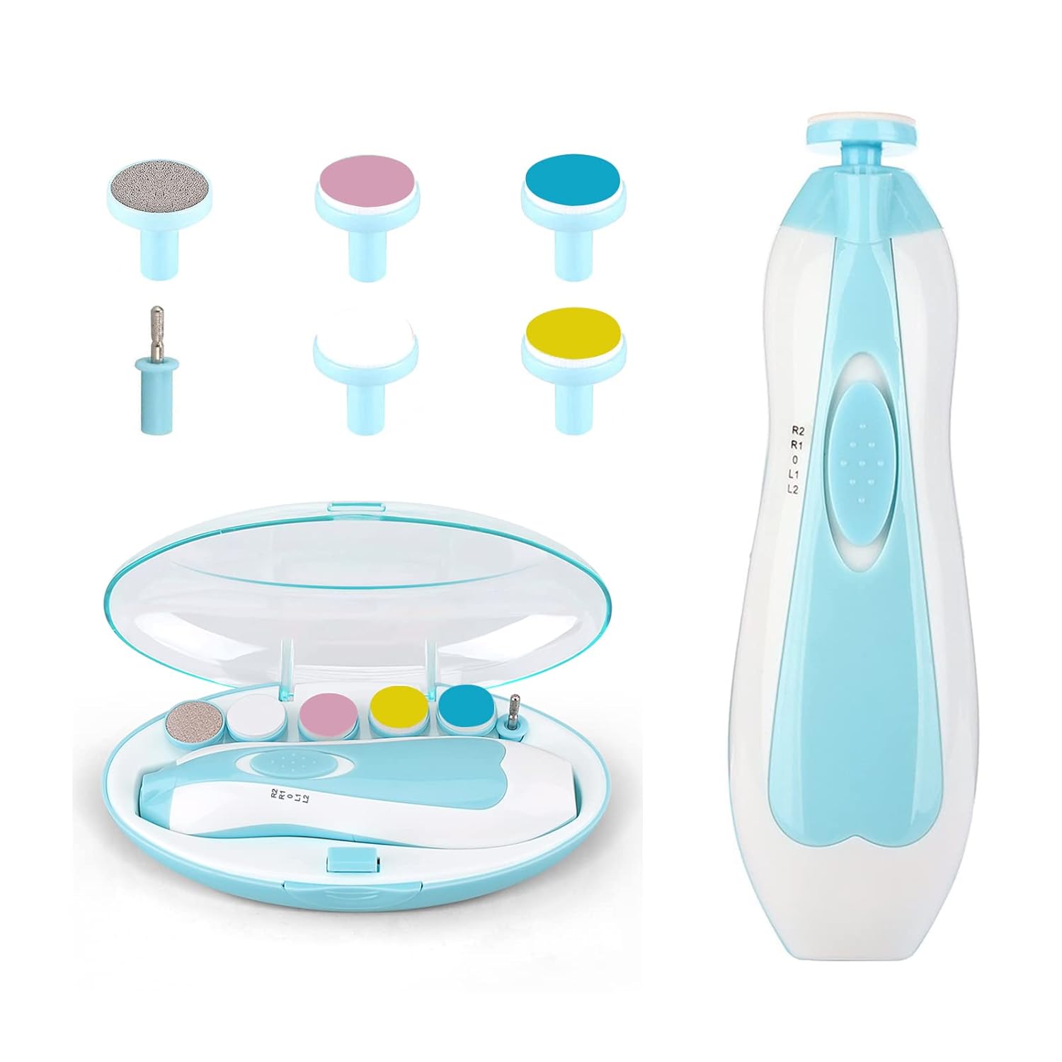 OUREPOCA Electric Baby Nail File 6-in-1 Set with LED light Quiet Safe for Newborn, and 6 Different Gringing heads Meet Baby and Adult Requirement