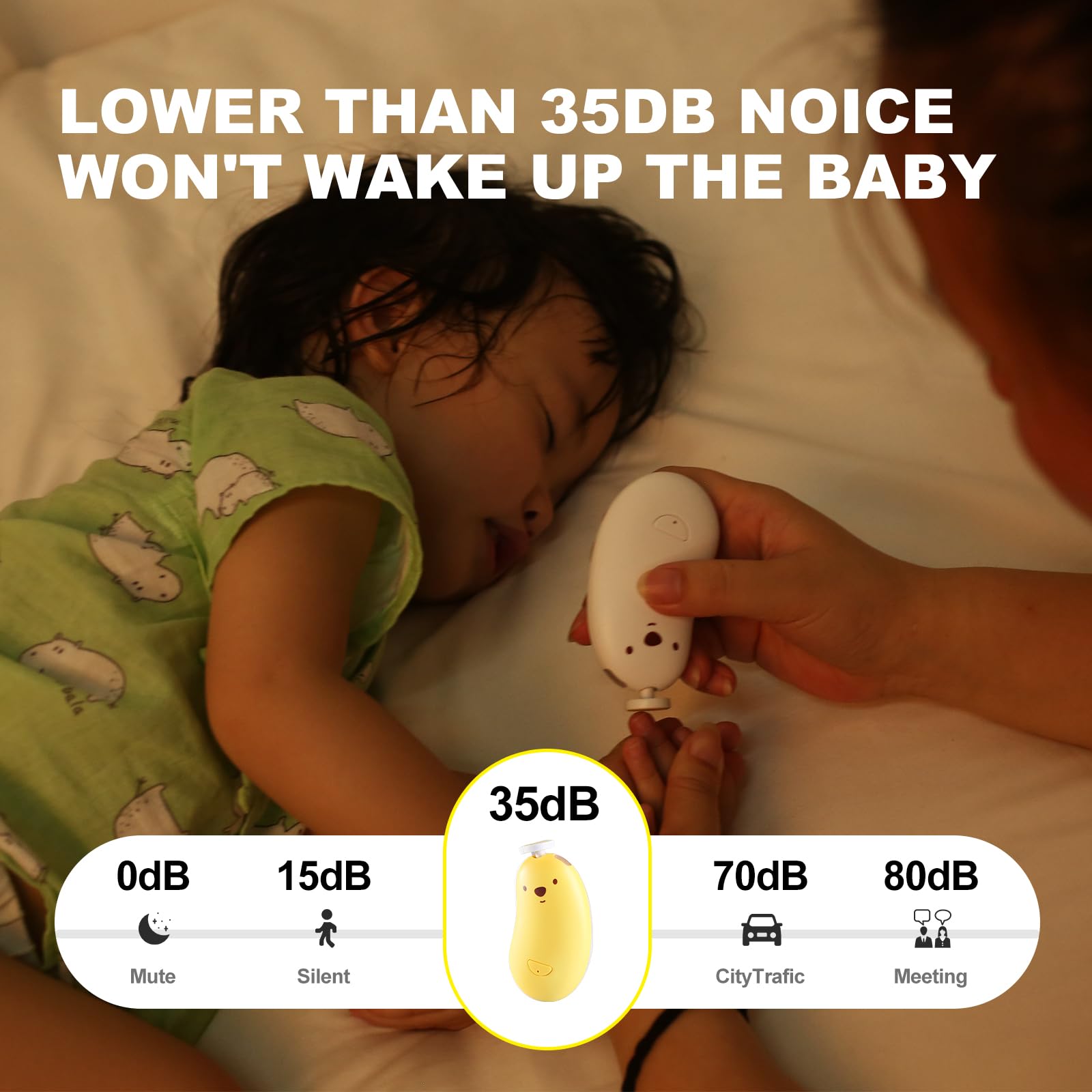 - Gentle & Safe: baby nail trimmer electric is designed with low noice gear to ensure won't make the baby panic during use. With a pressure-activated safety system, our electronic baby grooming kid is gentle on tiny fingers, preventing injuries.