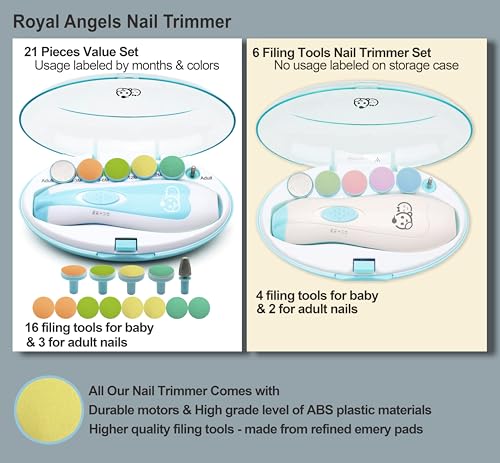 Baby Nail Trimmer 21 in 1, Usage Labeled Case & 13 Extra Replacement Tools, Royal Angels Baby Electric Nail File, Baby Nail Care, Nail Clipper Newborn Toddler Toes & Fingernails Nail Kit (Blue)