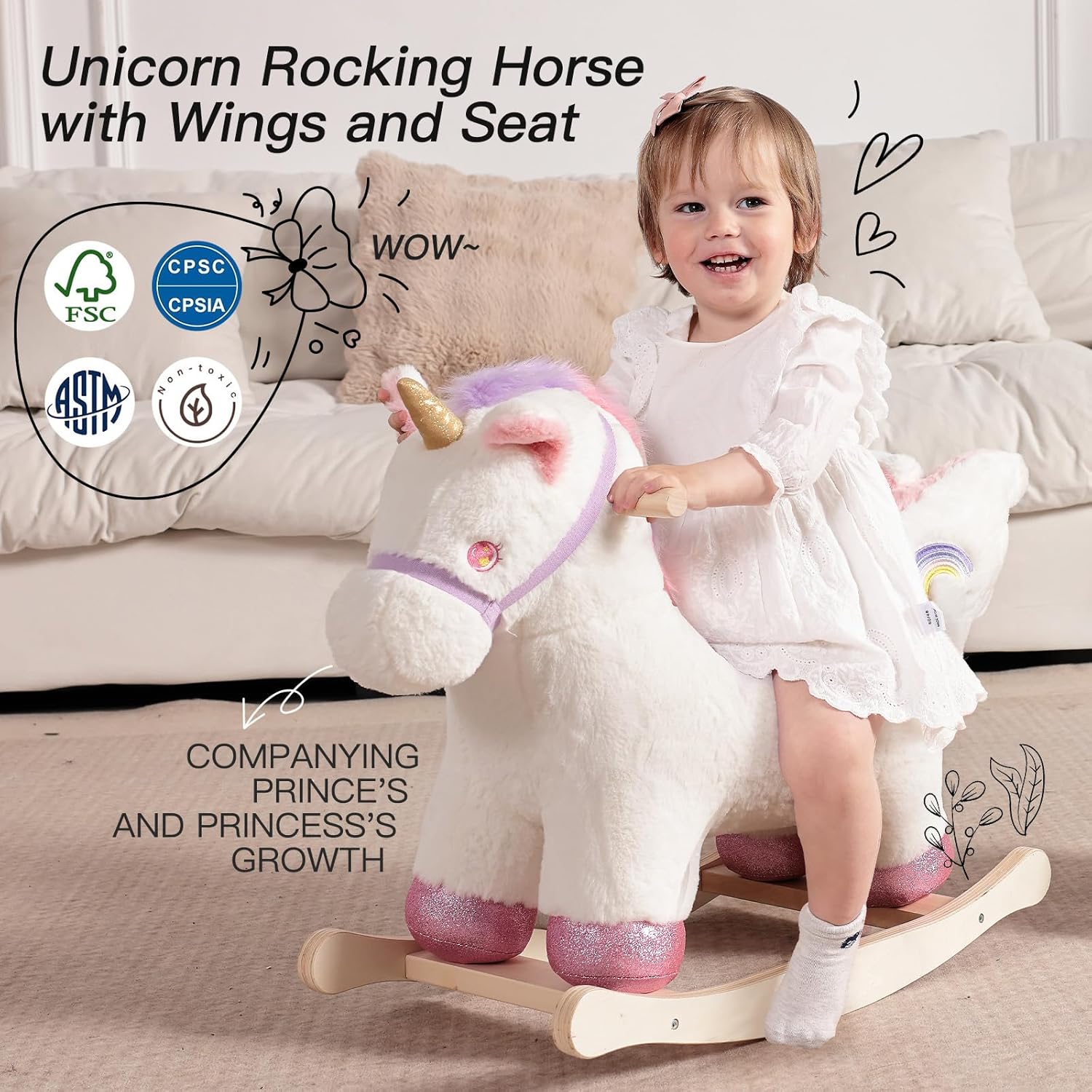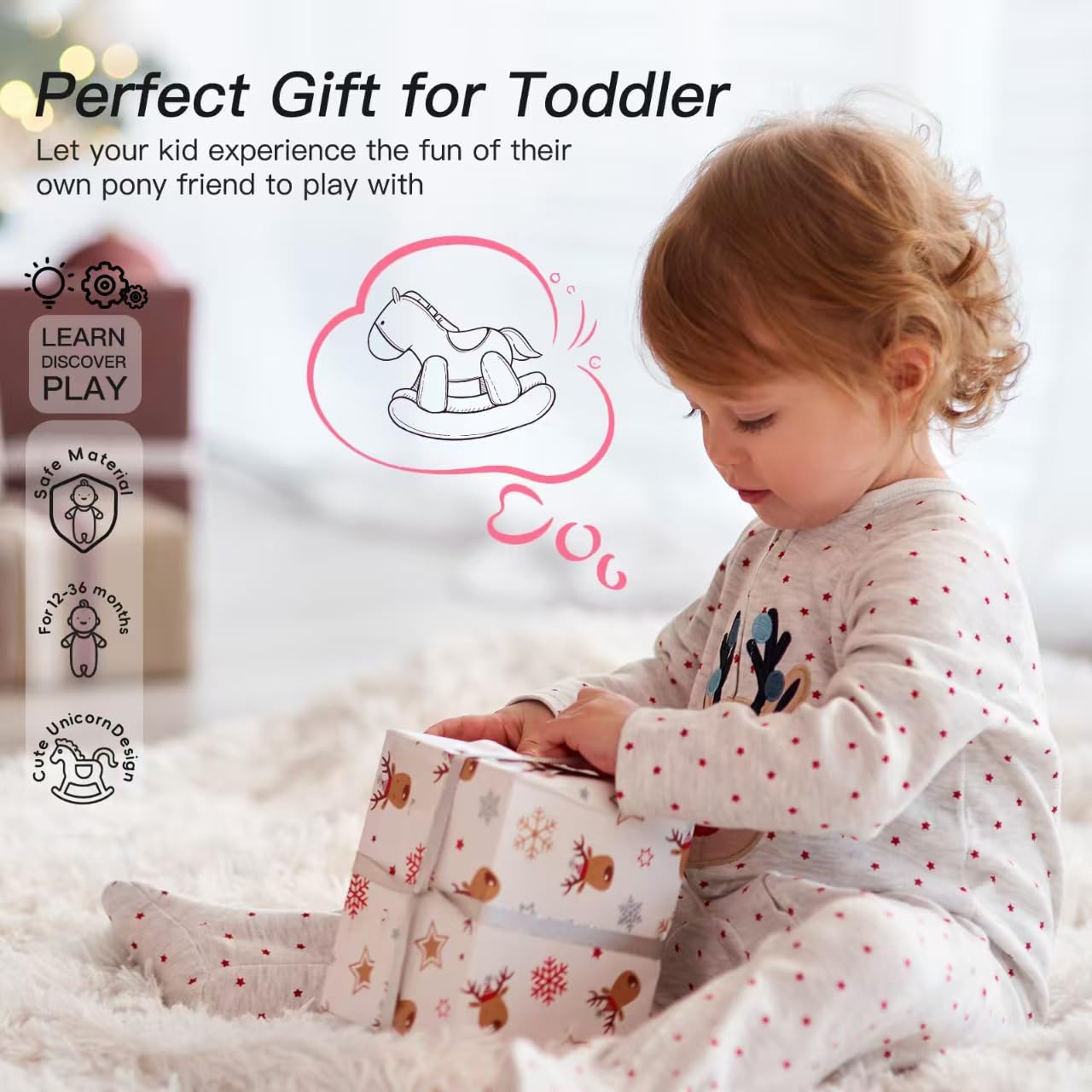 Baby Rocking Horse,Unicorn Wooden Rocking Horse for Toddlers 1 Year Old Cute Pink Stuffed Plush Ride-on Rocking Animal for Baby Girls Nursery/Child Christmas or Birthday Gift