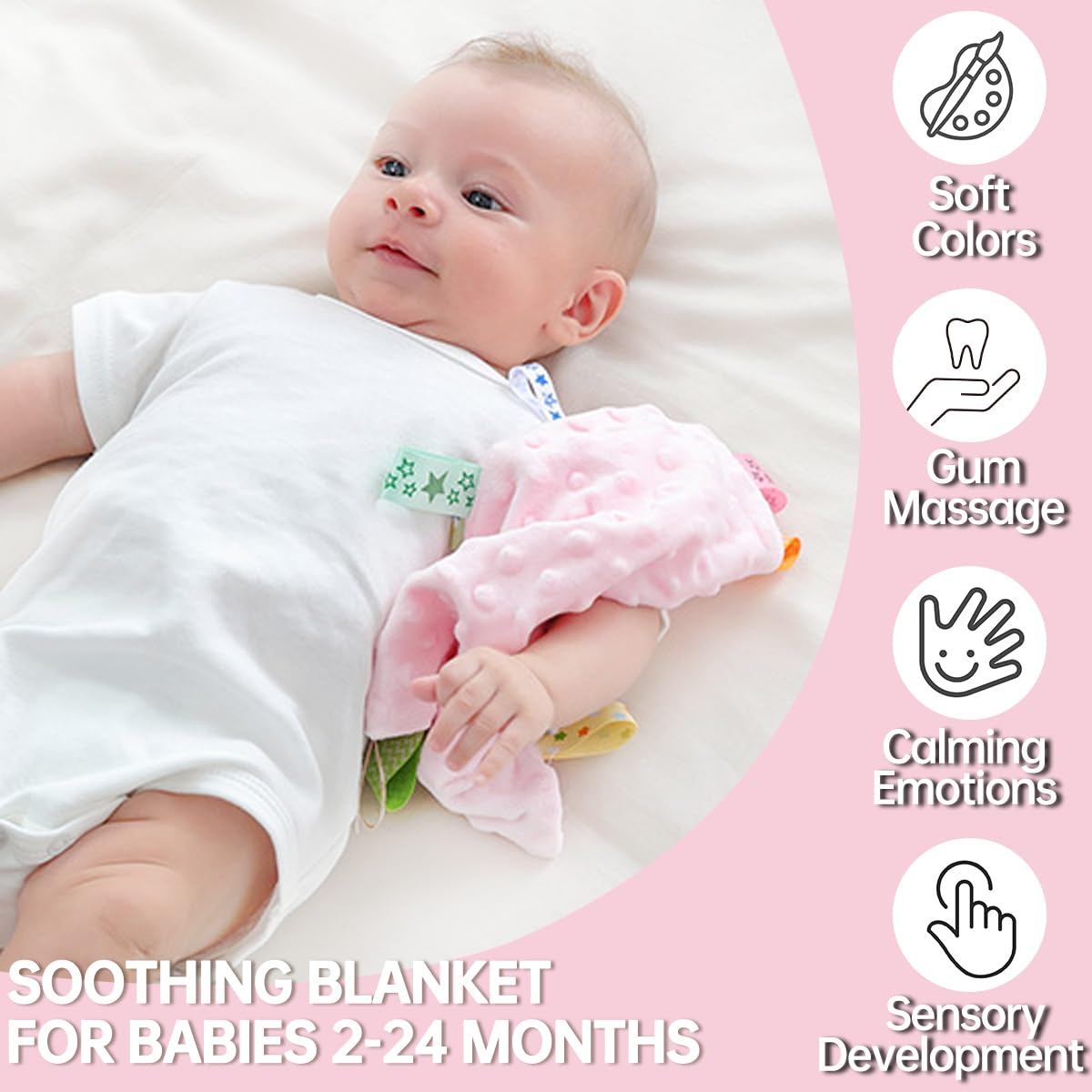 - 🍼FREE FROM HARMFUL CHEMICALS-Baby blanket is made of high-quality flannel fabric. Our cotton bibs and socks are perfect for babies' skin. The soothing blanket with colorful tags and rattle toys are exquisite toys, that stimulate a baby's auditory and visual senses. All materials are designed to protect your baby's sensitive skin