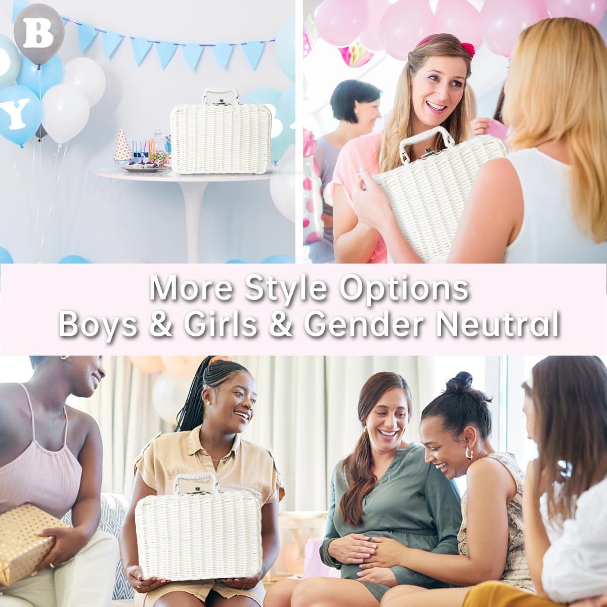 - 👶BABY BOYS GIRLS GIFTS BASKET-Welcome the new baby with this deluxe gift box full of goodies! 8-Piece included: Flannel fleece blankets, baby bibs, socks, rattle built-in bell, soothing blanket, milestone, and gift card. Handmade rattan box(Robust case is reusable: It could be used for other things besides baby things)