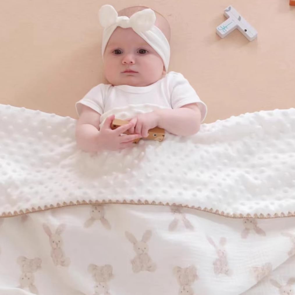 Baby Soft Muslin Thick Blanket Cotton and Dotted Backing Double Layer Receiving Blanket 40"x40" Bunny