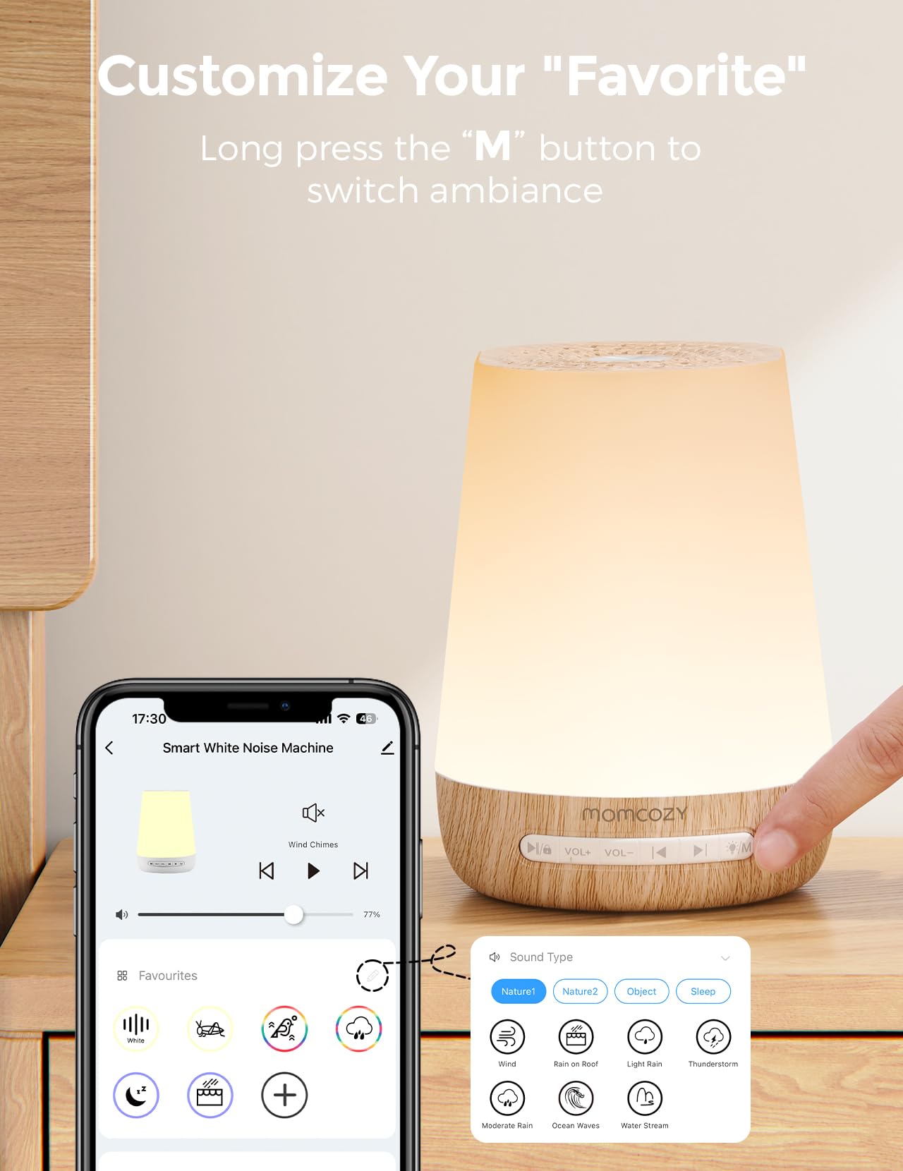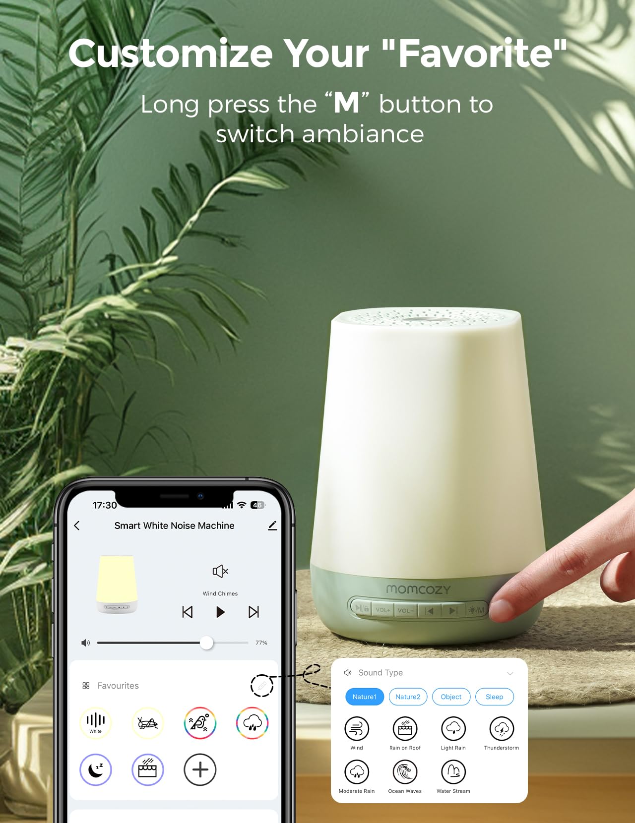 Baby Sound Machine, Momcozy White Noise Machine for Baby Sleeping with Night Light, Toddler Sleep Trainer with 34 Soothing Sounds, Timer, App Remote Control, Personal Sleep Routine(Green)
