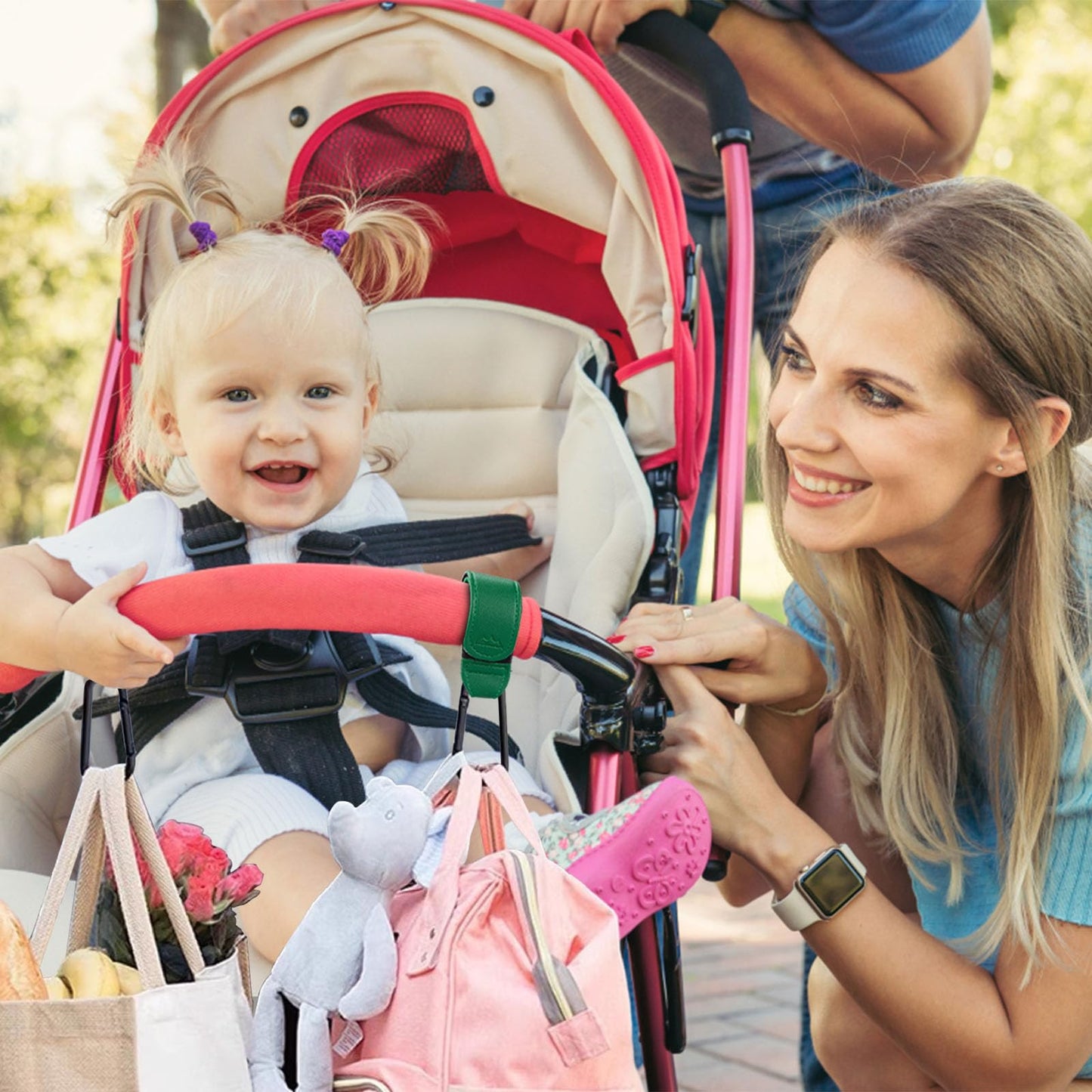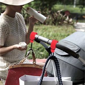 - 【Easy to use】 We have tested these stroller hooks on all major brands and the top 20 stroller . If your stroller has handles, these hooks will fit. On the foam handle or directly on the frame, you only need to buckle the Velcro on the handle of the stroller, you can easily hang all shopping bags on the shopping cart. It frees your hands from the heavy shopping bag and makes shopping with your baby a breeze.