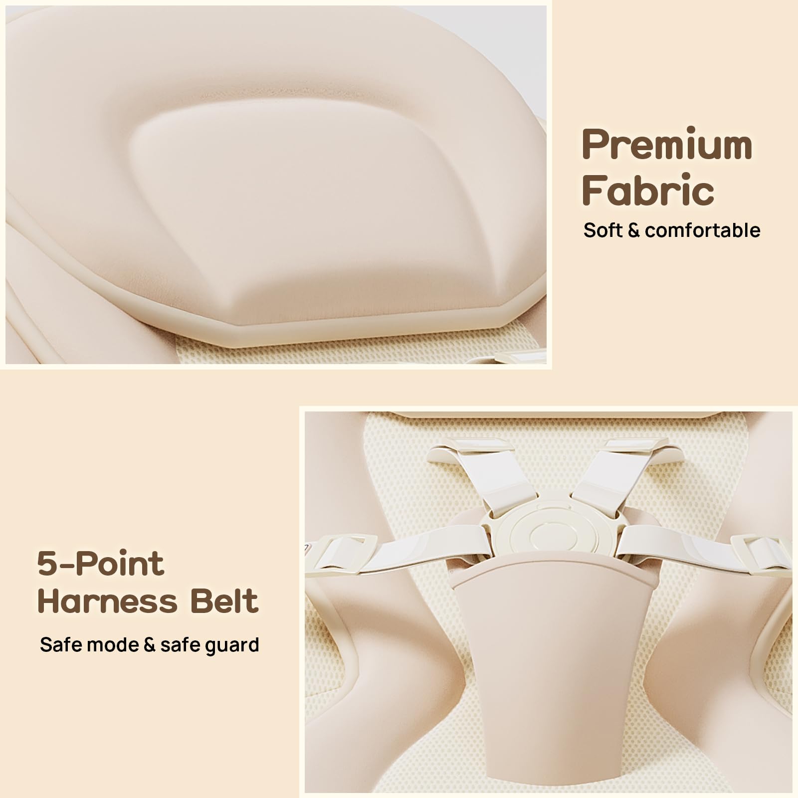 - [❤️Elegance and Safety]: The baby swing features a apricot color to give a soft visual effect, offering a modern aesthetic. This baby swing blends seamlessly with minimalist style home decoration. 5 point safety harness design holds baby securely in place to prevent falling