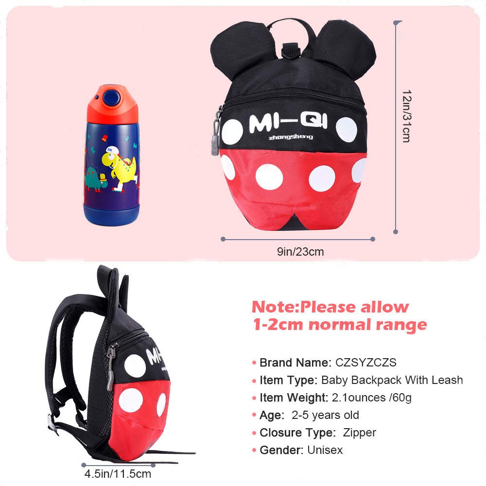 Baby Toddler Leash Baby Leash Backpack Little Kid Boys Girls Anti-Lost Travel Bag Harness Reins Cute Cartoon Backpacks with Safety Leash for Baby Backpack Leash for Toddlers 1-5 Years(Black red)