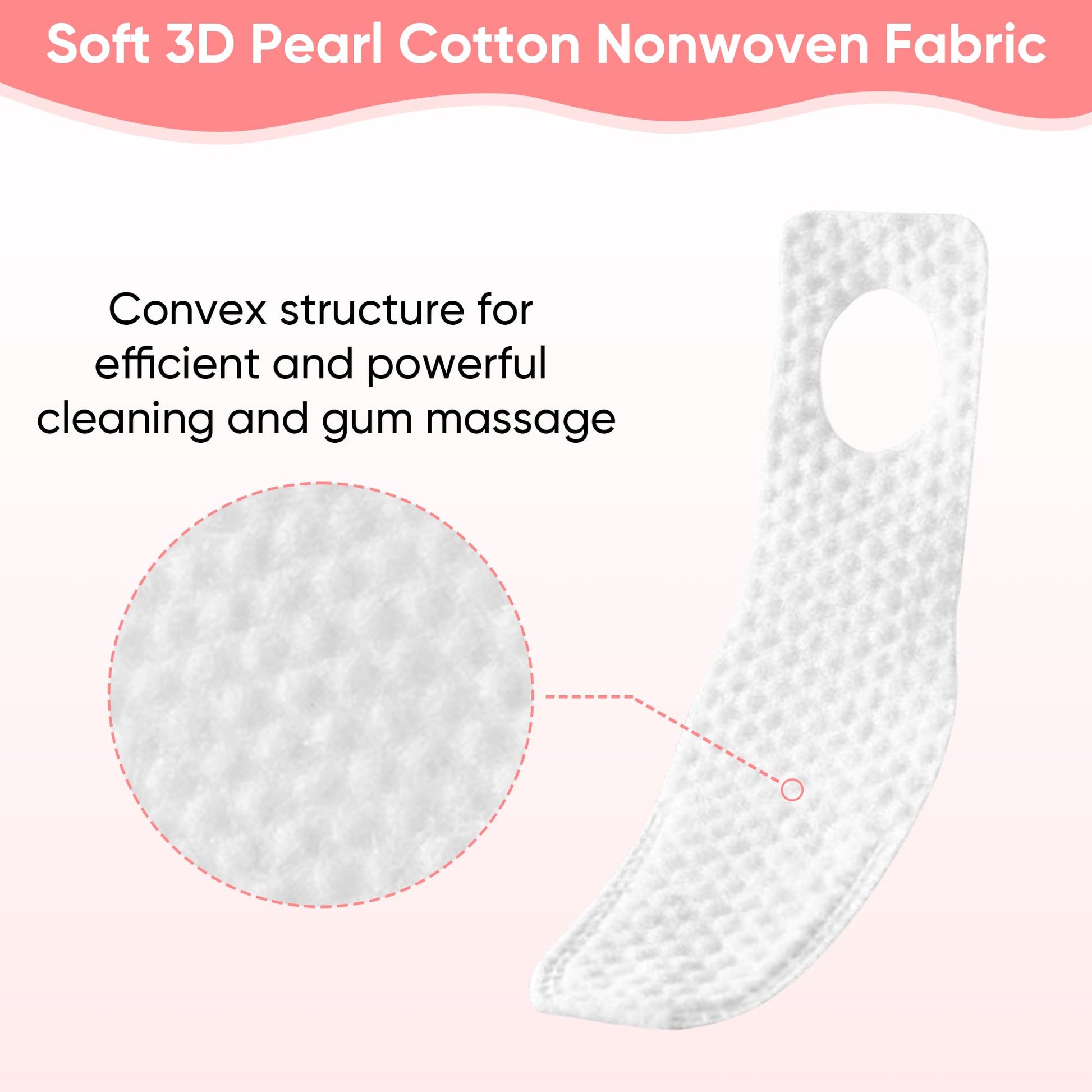 - Professinal Design: 3D wave soft brush head made of 100% medical skim gauze can clean the mouth 360°, making cleaning easier. Soft absorbent gauze is comfortable to use, fit baby's gums, no fluorescent whitening agent, no taste. The Paper handle is sturdy, flexible and enough long to easily reach every part of your baby’s mouth.