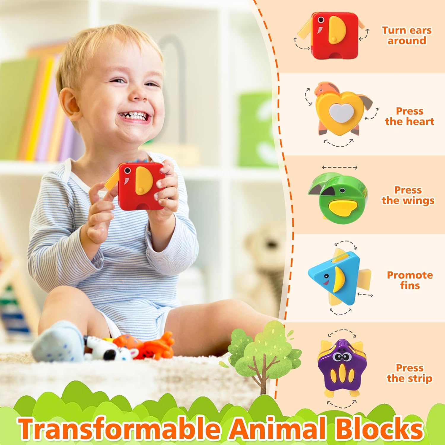 - 【Magical And Colorful Blocks】-Pull the organ button on this 5 cute stereoscopic squares can transfer into 5 fun and beautiful color animals.Great toy for hand-eye coordination and also to teach the colors toys for 1 2 3 year old boys girls kids. Baby Toys 6-12 12-18 Months