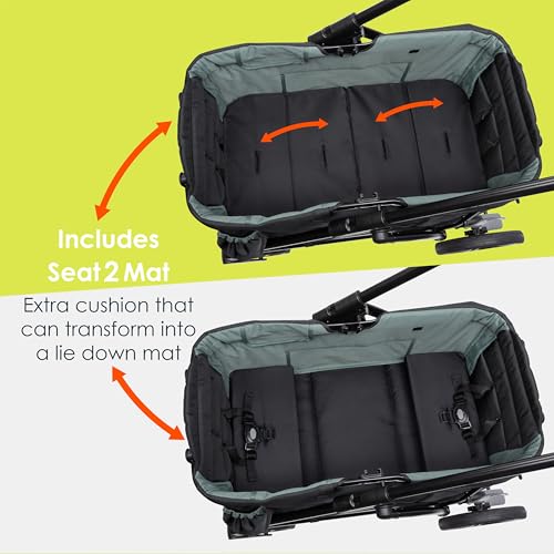 Get Ready for your outdoor adventure with the exclusive Baby Trend® Expedition® 2-in-1 Stroller Wagon! Designed with utility, safety and style, the Expedition® 2-in-1 Stroller Wagon is for the family that loves outdoor activities and discovery. The super large cargo space with built-in seating and the two 3-point safety harness belt allows kids to explore with safety. Plus, the extra-large ratcheting canopy with UPF 50+ protection and air-flow mosquito netting keeps your little ones away from the harmful sun-rays and rain. Parents will also love the Ultimate Storage Solutions, which includes parent and child trays with 2 cup holders and center consoles, plus 2 additional cup holders outside of the wagon. The Baby Trend® Expedition® 2-in-1 Stroller Wagon is equipped with easy one button removable 11" rear wheels and durable 8" front wheels for easy maneuverability. With the Hideaway Pull Handle, parents can easily transform the “Push” stroller into a “Pull” wagon mode. The compact flat fold allows the wagon to be easily stored and transported.