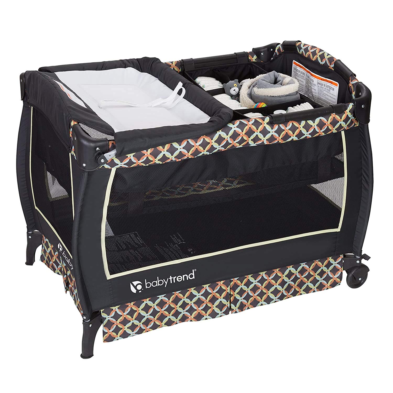 - Removable full-size bassinet converts to a full-size playard space