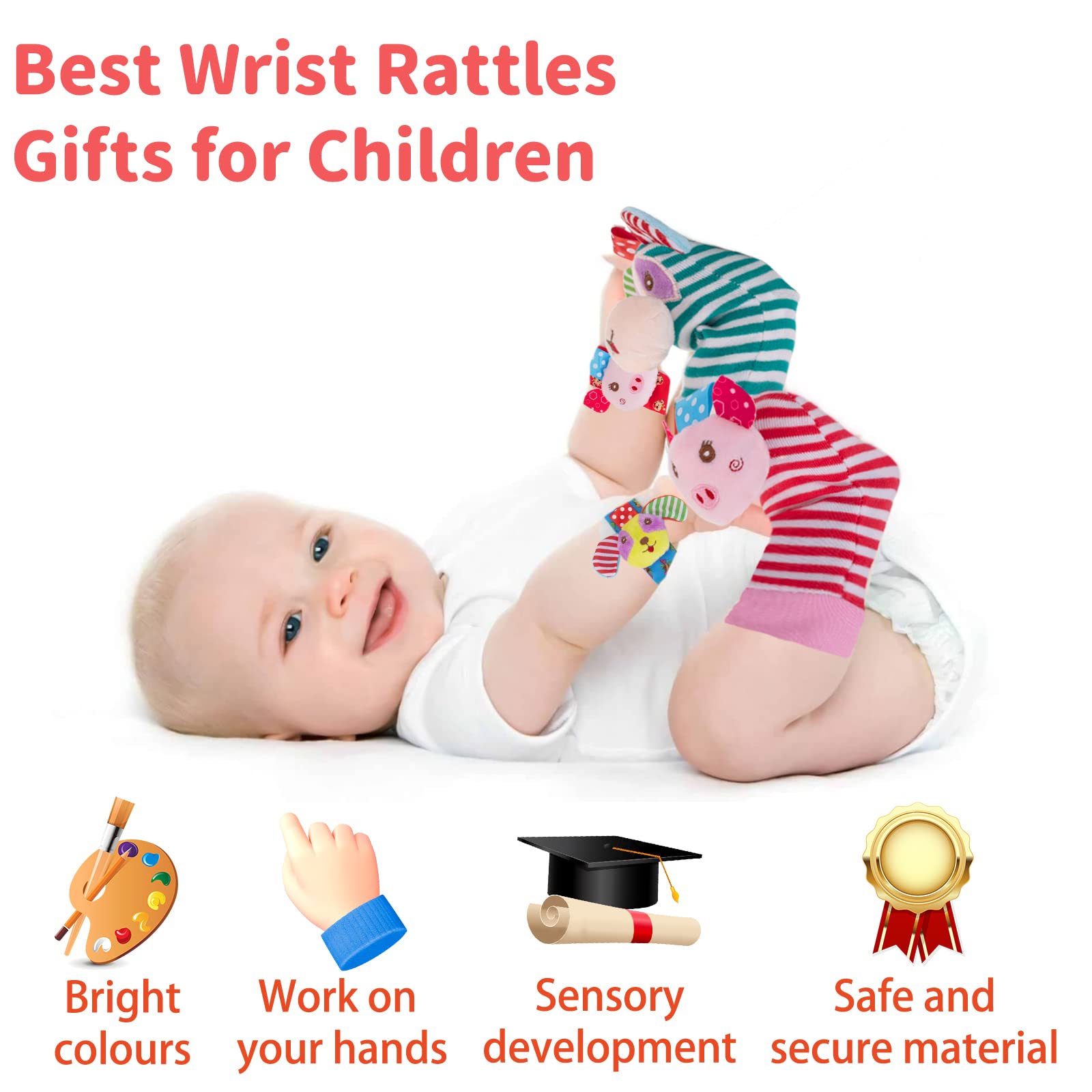 - Early Baby Educational Toys , the colorful colors and sounds of the wrist rattle promote baby's sensory exploration through sight, touch, smell and hearing.
