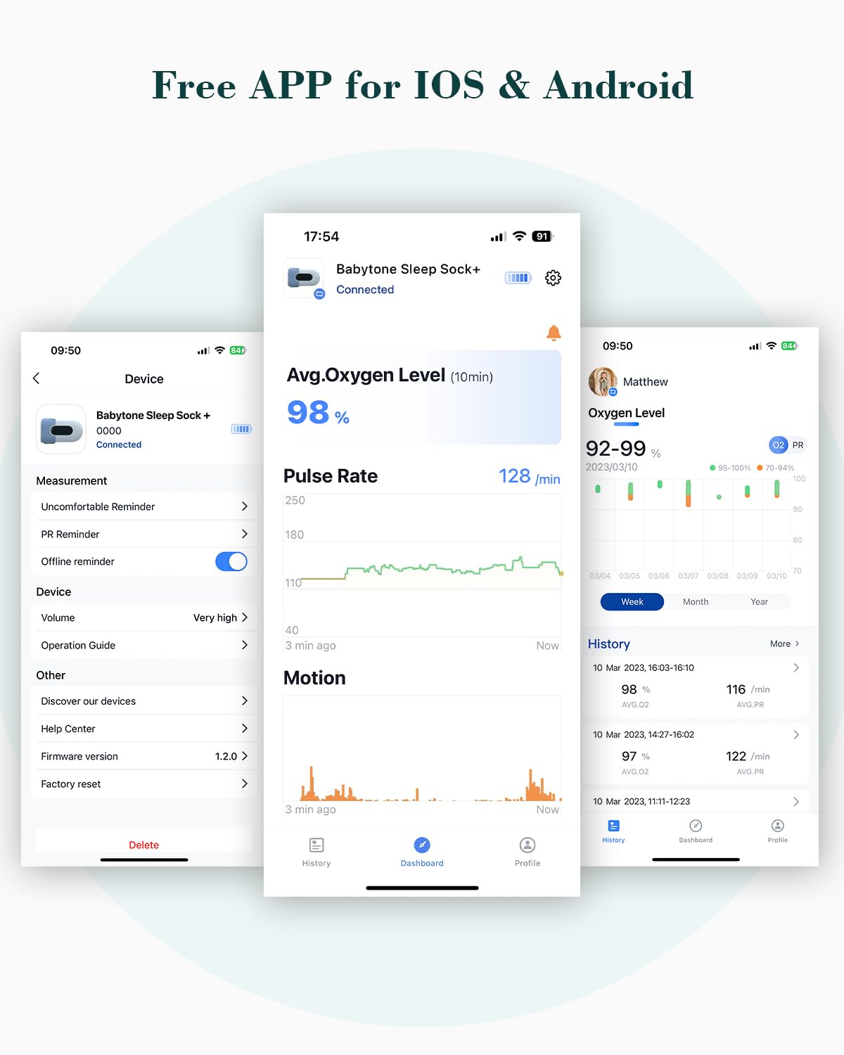 Free smart ViHealth app will receive real-time sleeping data and support export history reports.