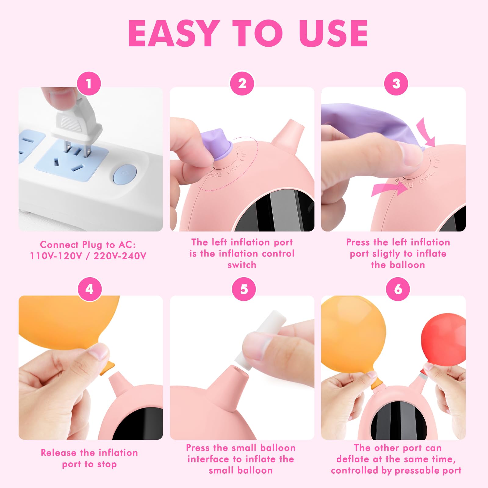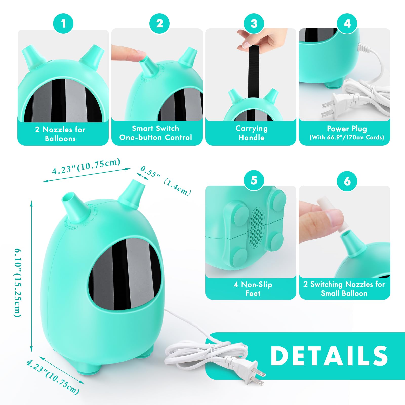 - 【Lightweight & Portable】Exclusively designed balloon pump electric meets your portable and fashion needs. With an easy-grip hand strap so you can take it to the party for on-the-spot balloon filling.