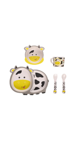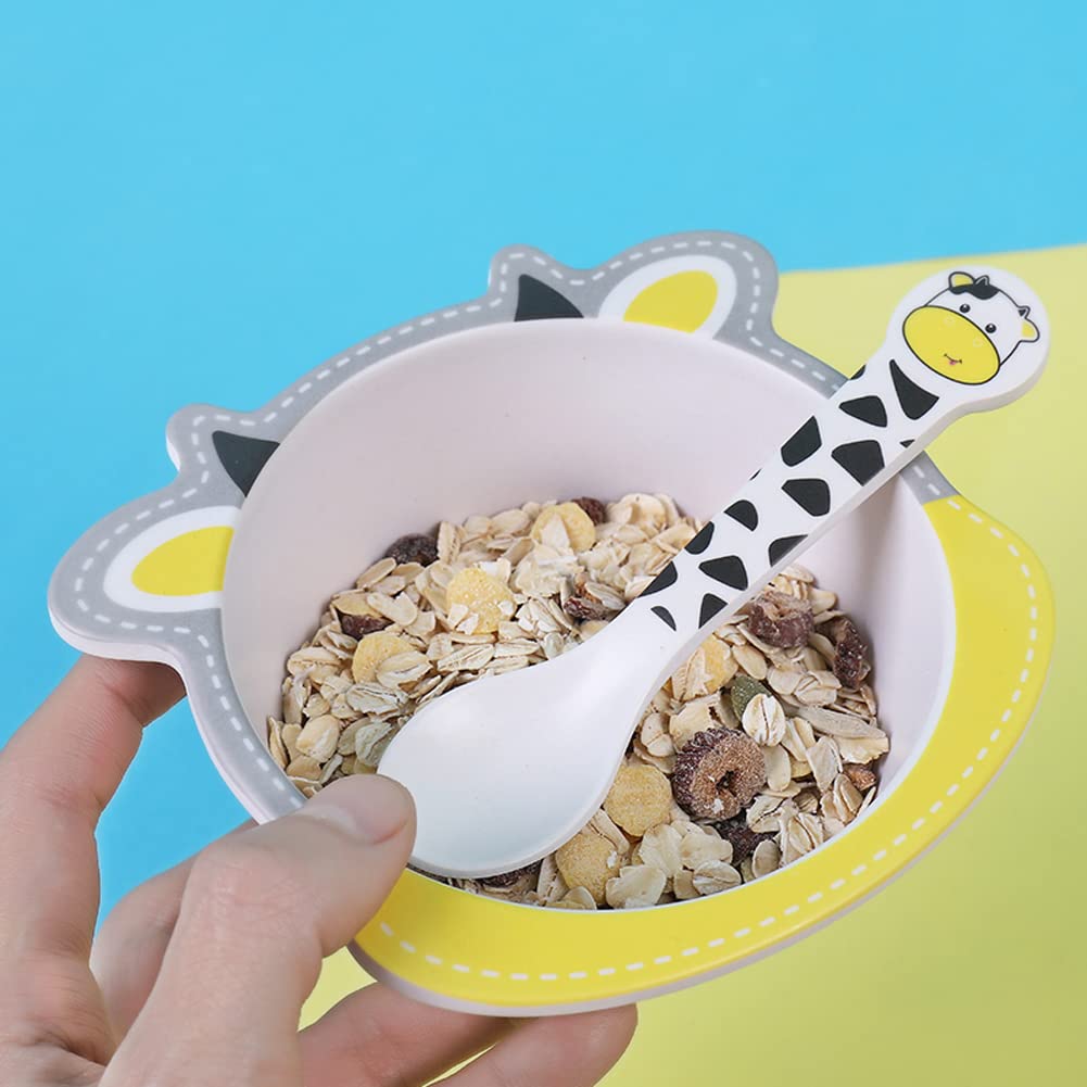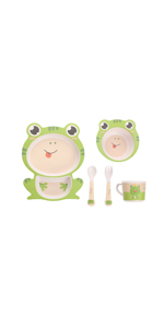 - Healthy Material-This cartoon tableware set is made of bamboo fiber,Use food-grade food plant colouring,non-toxic, odorless and environmentally friendly.
