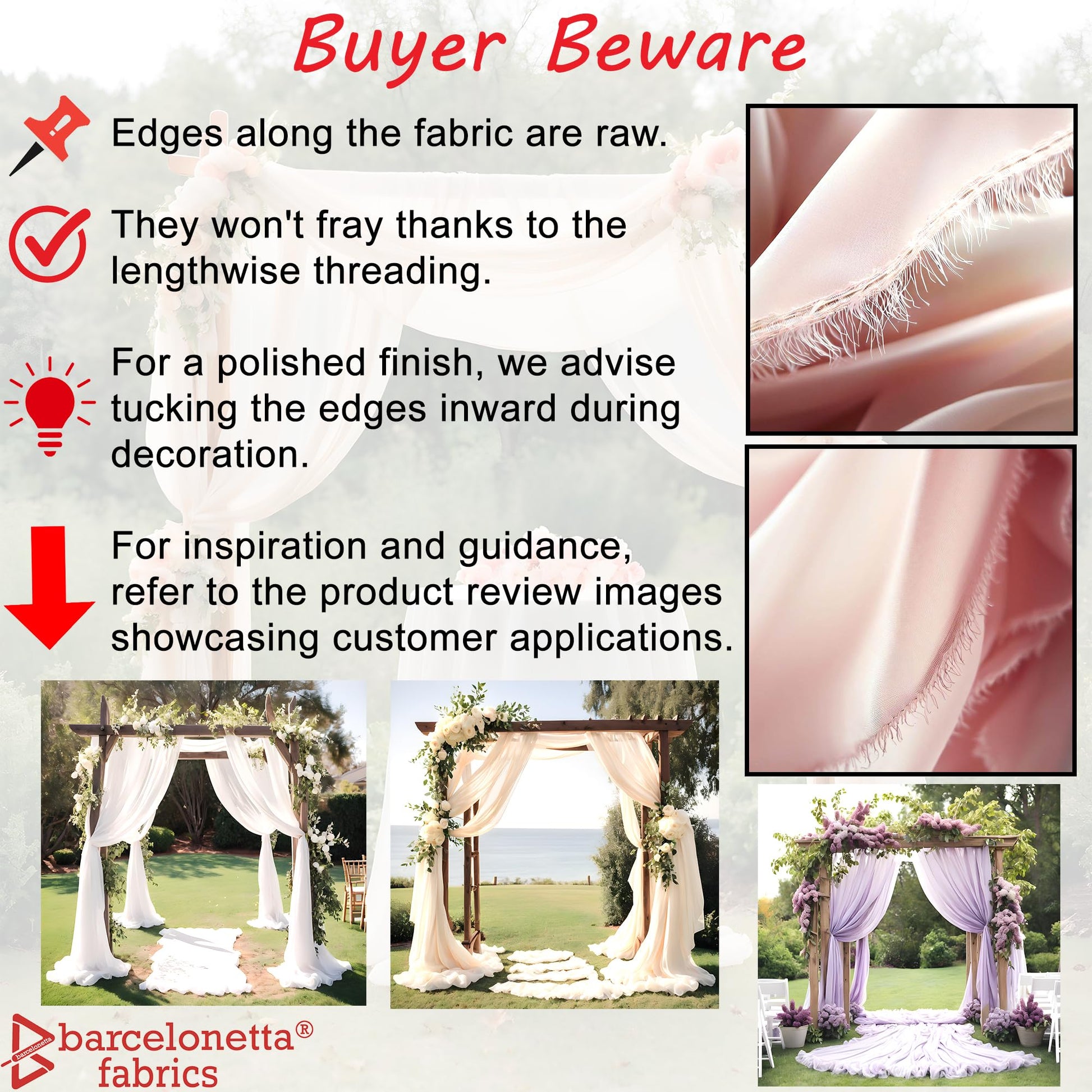 - HIGH-QUALITY SHEER CHIFFON FABRIC FOR WEDDINGS - Create breathtaking designs with chiffon fabric, a favorite for wedding decoration and event decoration fabric. This sheer fabric is perfect for drapes, arches, and overlays. Use this chiffon fabric as a tulle fabric substitute for crafting elegant table runners, chair covers, and other stunning décor pieces.