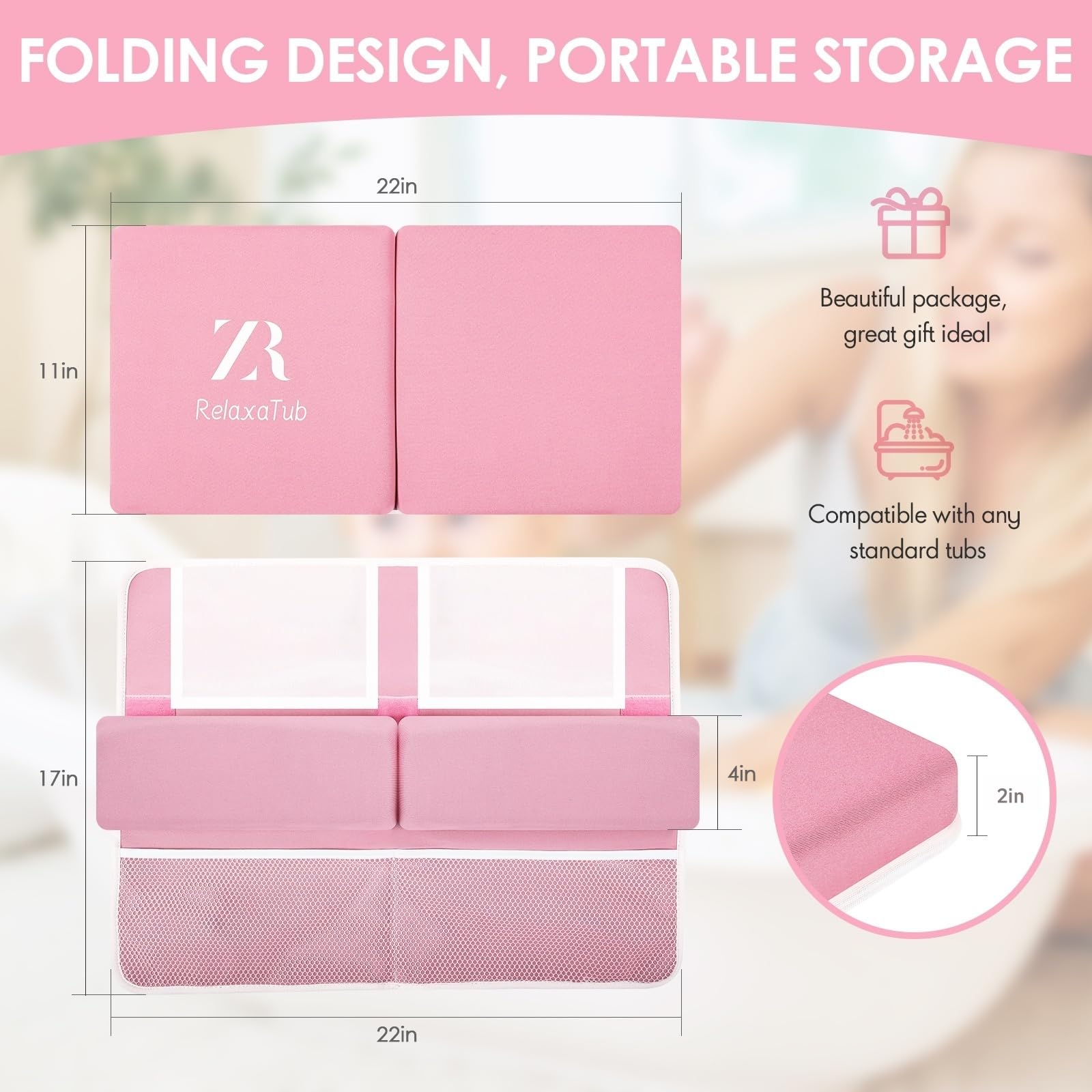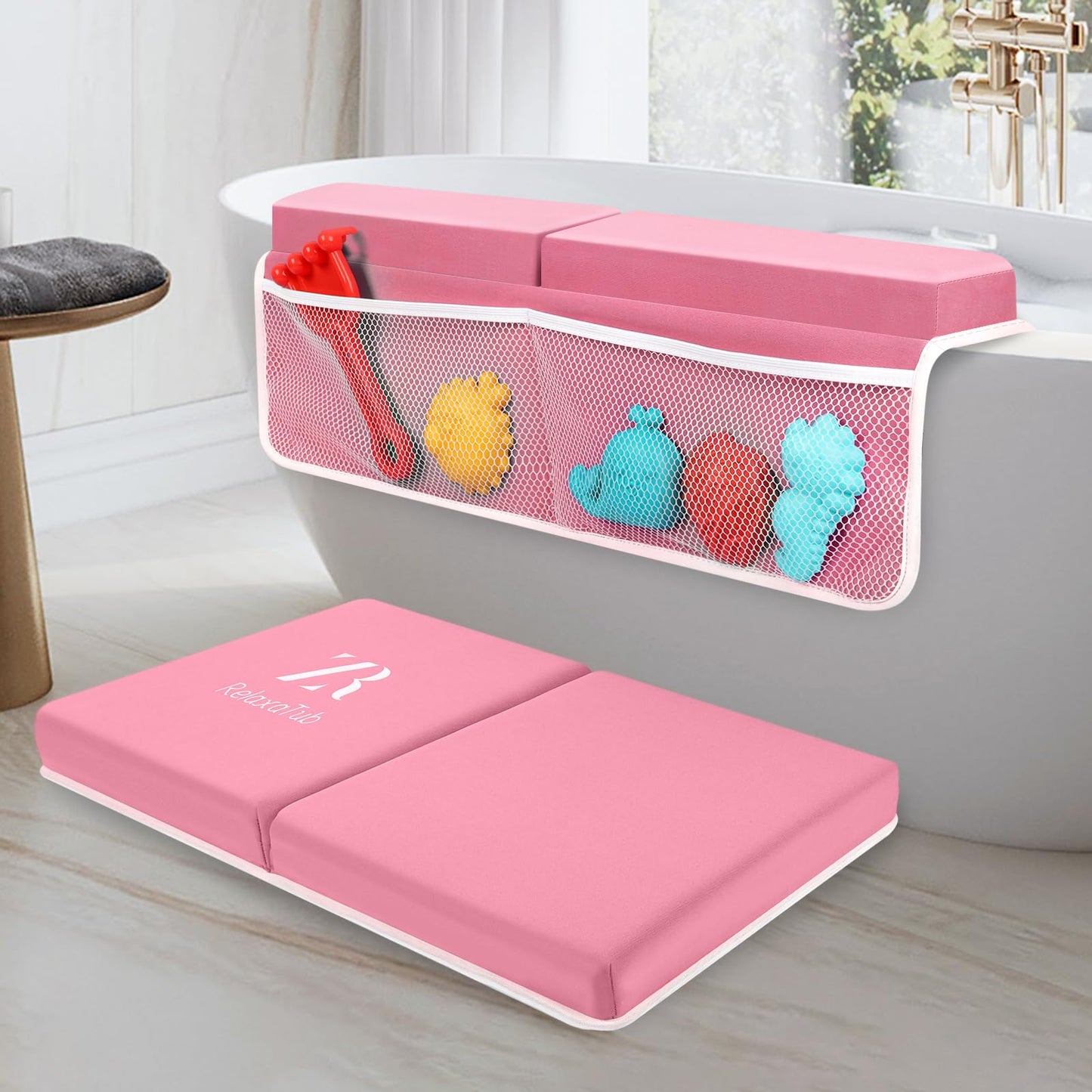 Bath Kneeler and Elbow Rest Pad Set - 2 inch Comfortable Thick Baby Bath Kneeler Pads, with Toy Organizer Pockets - Quick Drying, Foldable, Non-Slip for Baby and Toddler Bathing (Pink)