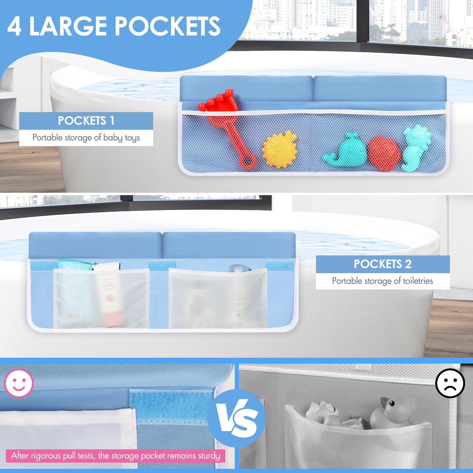 - POCKETS FOR BABY BATH ESSENTIALS: Our baby bath mat comes with 4 storage pockets to store your baby's shampoo, bath gel and bath toys, reducing the need to move around during bath time.