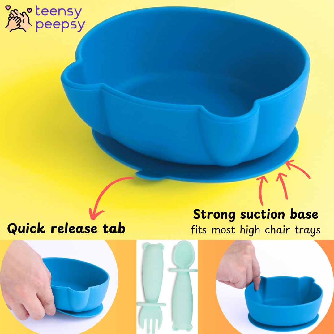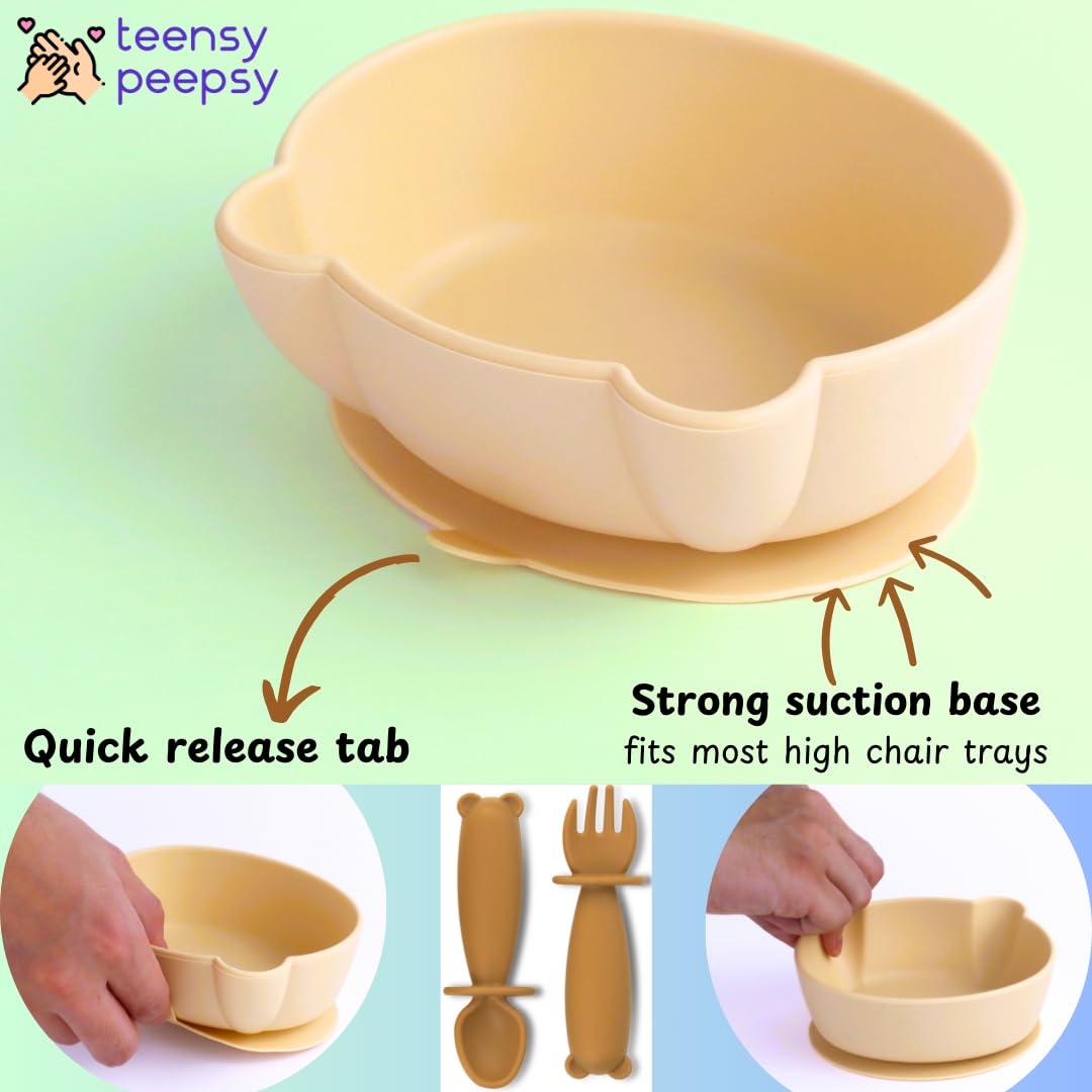 - WHAT TO EXPECT IN THE BOX: 1 silicone bowl with suction plus 1 baby spoon and 1 baby fork utensil set.