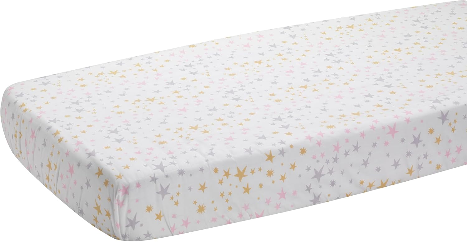 - Warm pastel colors and star patterns will work well with many different nursery designs