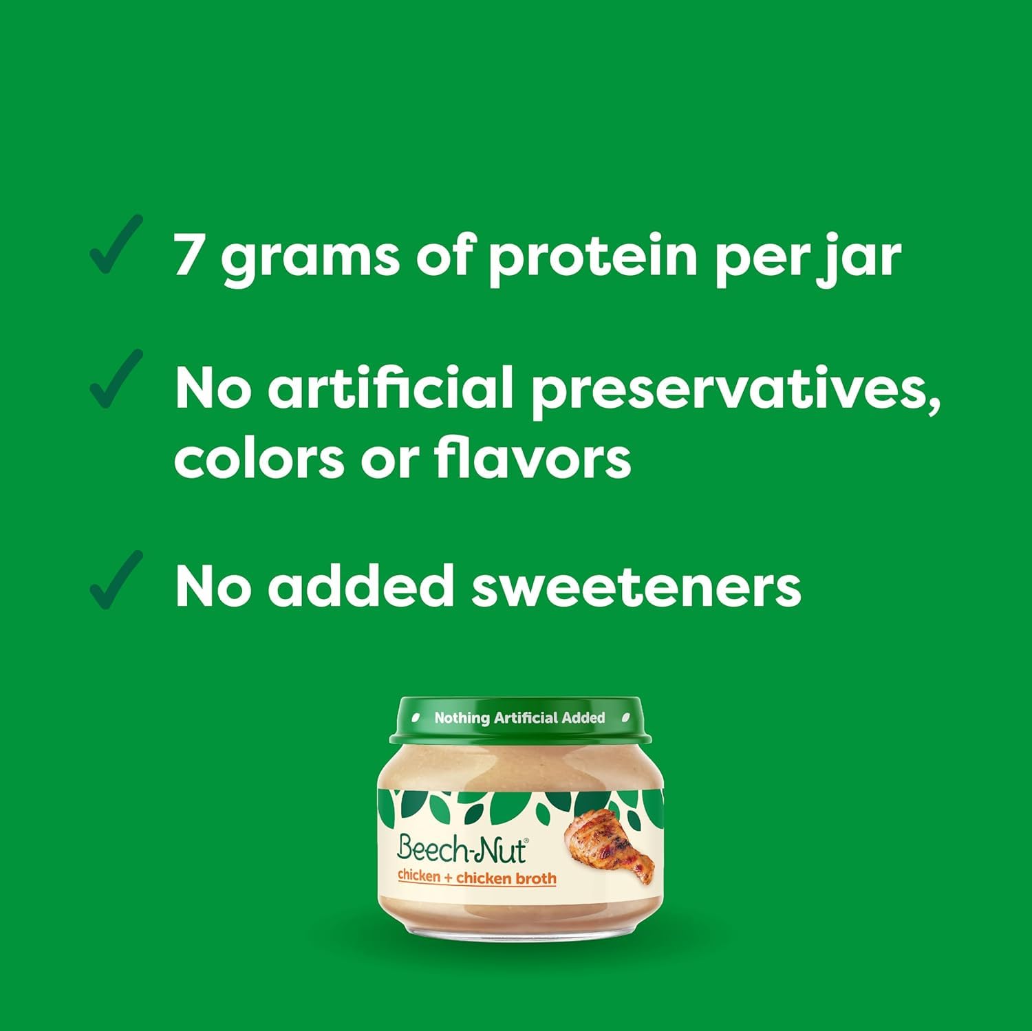 - 7G OF PROTEIN FOR BABY: Beech-Nut Meat Baby Food is a savory blend of real pureed chicken & chicken broth. Each jar contains 7 grams of protein to help keep baby full.