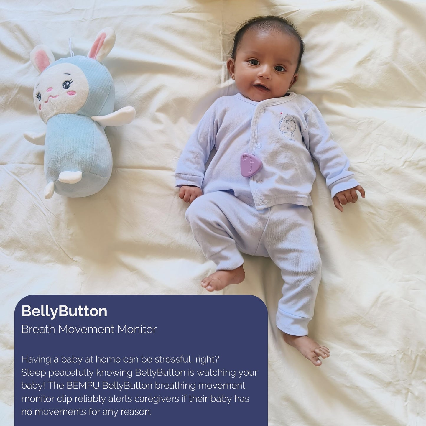 Bellybutton Smart Breathing Baby Monitor for Safer Sleep with Gentle Vibration, App Notifications, Easy to Clip, Portable, Medical-Grade Materials & Non-Bulky Design