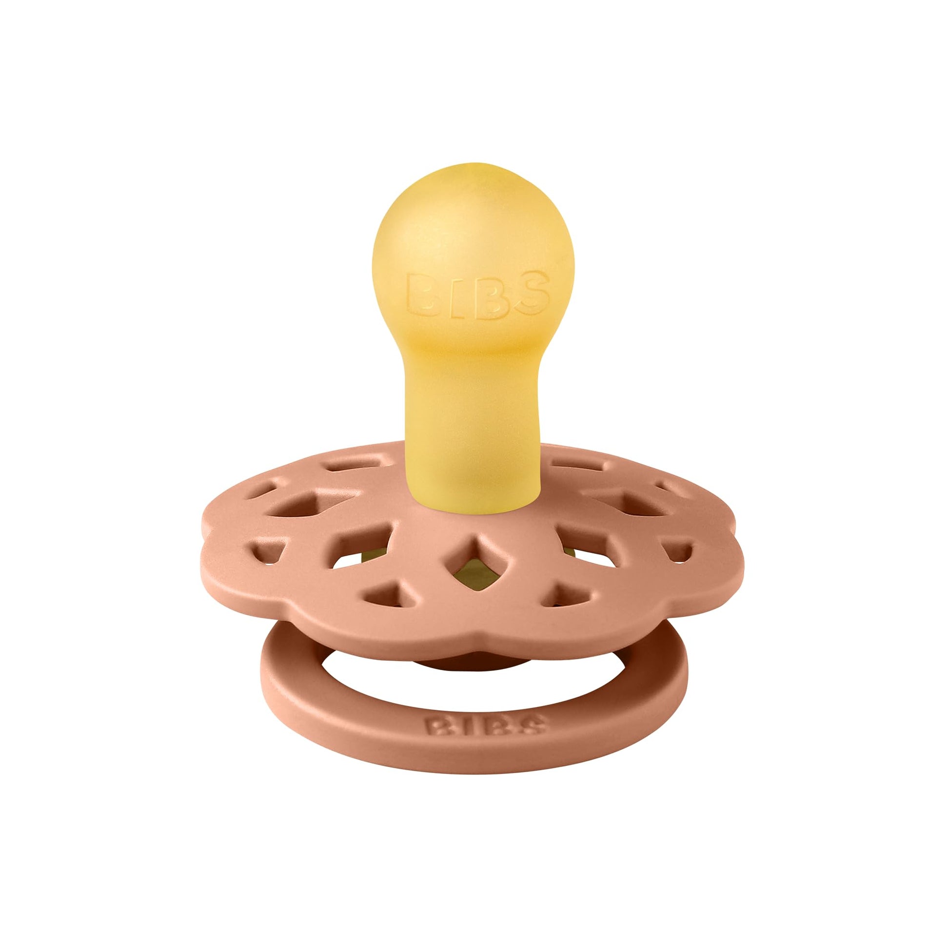 A classic round pacifier in a timeless design with a modern twist. Designed and made in Denmark. BIBS has been on the market for over 40 years – an all-time favourite! BIBS BOHEME is the preferred pacifier for many children because of the cherry shaped nipple. The shape of both shield and nipple is like a mother’s breast and is the optimal support for a natural sucking reflex and for breastfeeding. The nipple is made of 100% natural rubber latex – which is soft and flexible. The nipple is equipped with a vent hole, letting out the air to make the teat shape as natural as possible. Because of the natural material, variations in colour and clearness may occur – remember to replace within 4-6 weeks of regular use! The shield is convex which allows airflow to ventilate the delicate baby skin. The shield is made of polypropylene (PP), a very light plastic material with high strength, and is very wear resistant.
