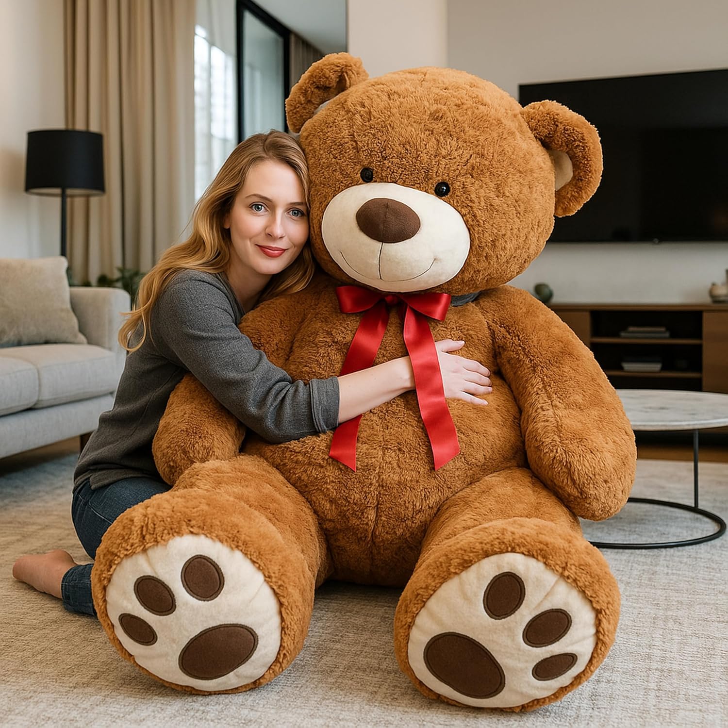 - LARGE 5-FOOT GIANT-SIZED PLUSHIE: This big bear will make a big impression! Its size will get a lot of attention. Big enough to cuddle with anyone. Sit this bear in your favorite chair, corner, bed, or sofa, any way you like. 5 feet / 60 inches / 150 cm.
