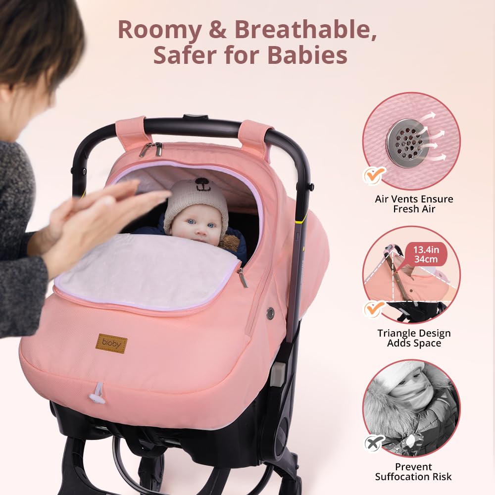 - Spacious and Breathable: Baby car seat covers features a roomy structure that avoids any risk of suffocation. Designed with breathable vents, carseat cover ensures ample air circulation to keep your baby cool and comfortable