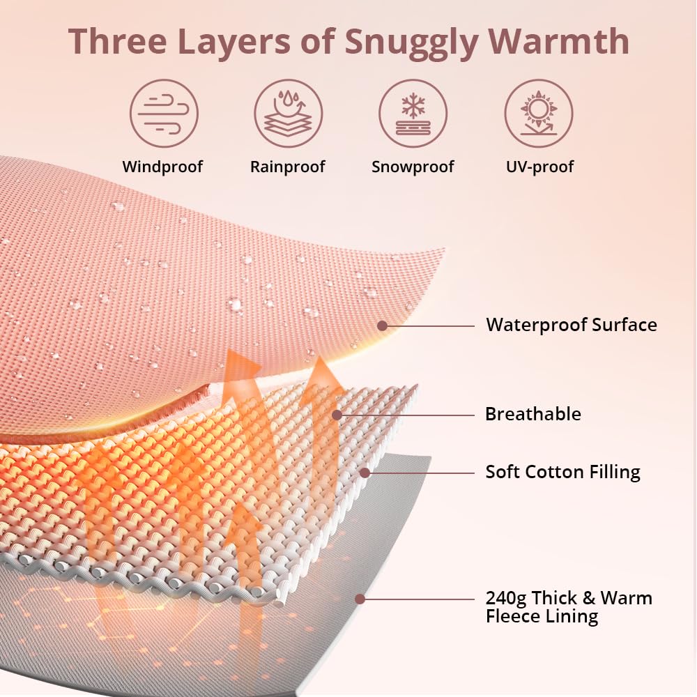 - Double Warm & Cozy: Our winter car seat cover features a premium three-layer design with a waterproof composite outer layer, a cotton-filled middle layer, and a thickened warm 240-gram fleece inner layer. Perfectly designed to keep your baby warm, cozy and shielded from harsh cold winter/ snowy/ rainy/ windy weather