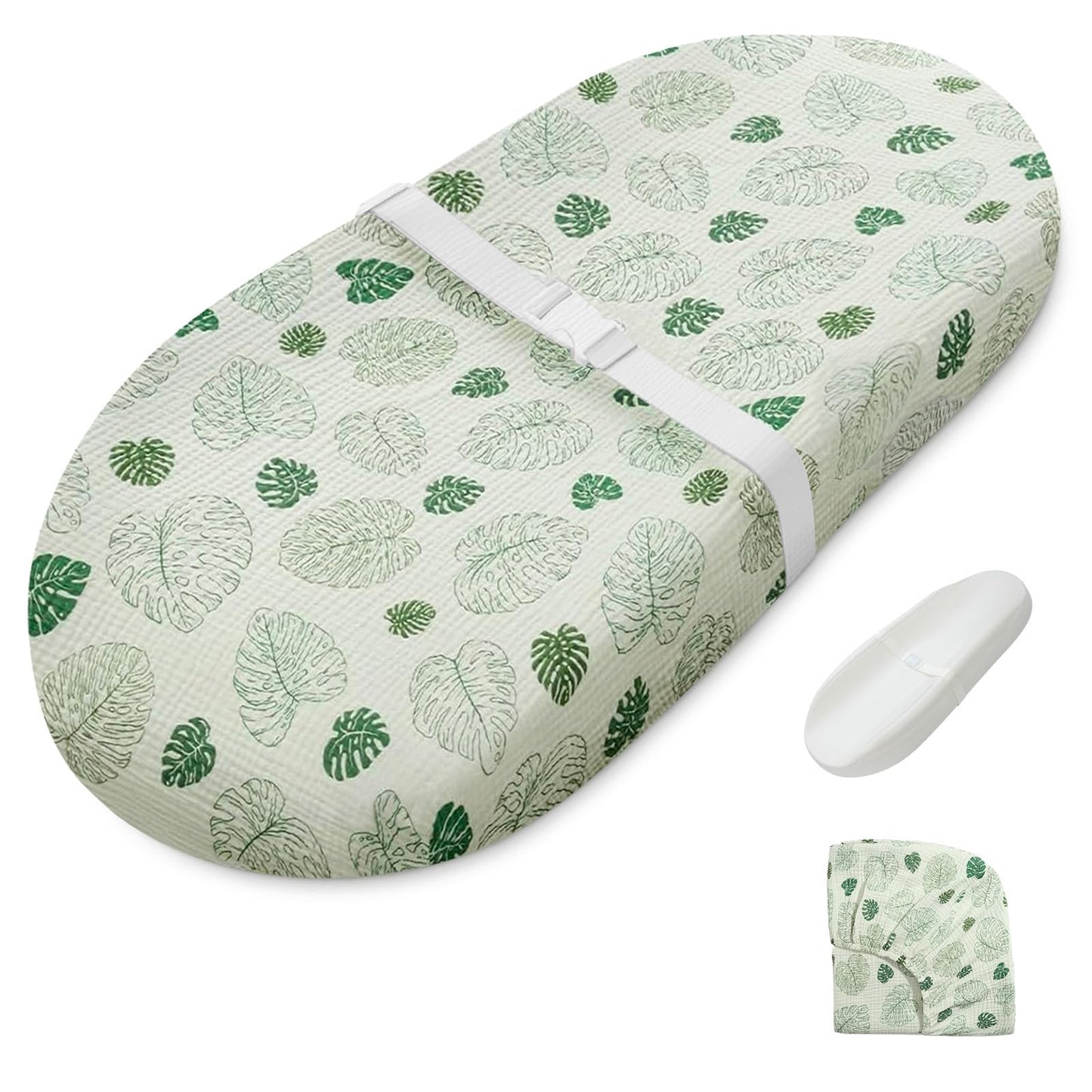 - Design Your Dream Nursery: Our muslin baby changing pad in Monstera brings a fresh, natural charm to your nursery. It's the first choice for modern parents, an unforgettable unisex baby shower gift that new parents will love