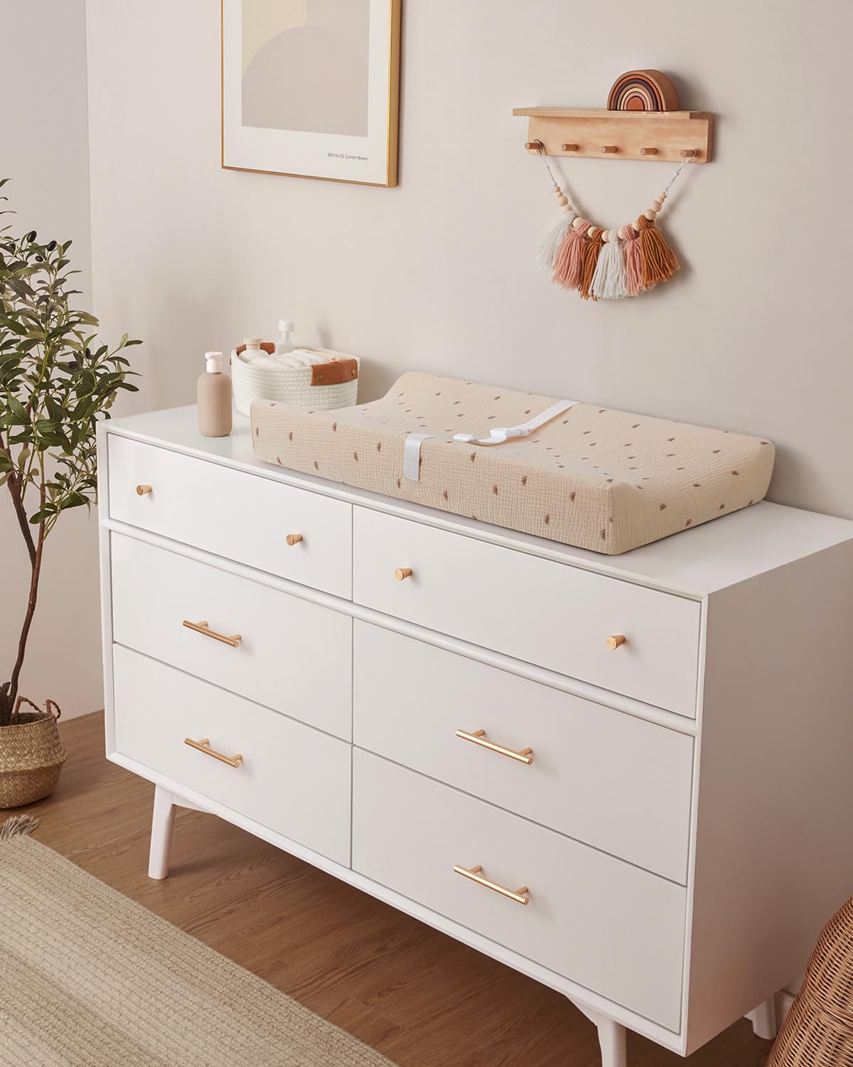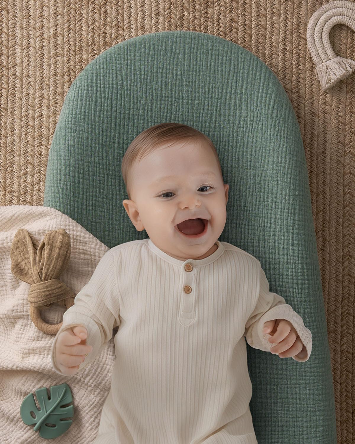 - Premium Muslin & Comfy Design: Made from a soft, breathable muslin cotton cover and a cushioned foam pad, our baby changing pad is gentle on your little one's delicate skin, keeping them warm and cozy during diaper changes in all seasons