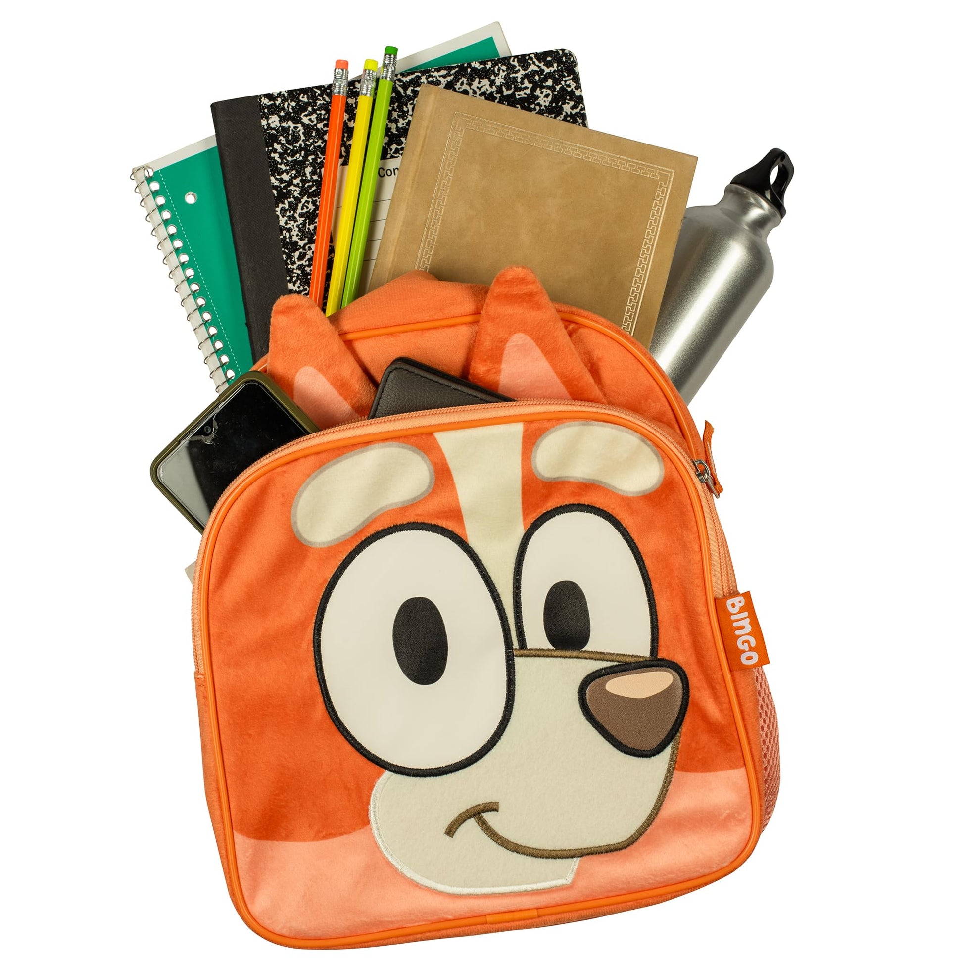 Spacious main compartment will hold smaller notebooks, tablet, school book, Bluey toys, coloring book, and crayons.