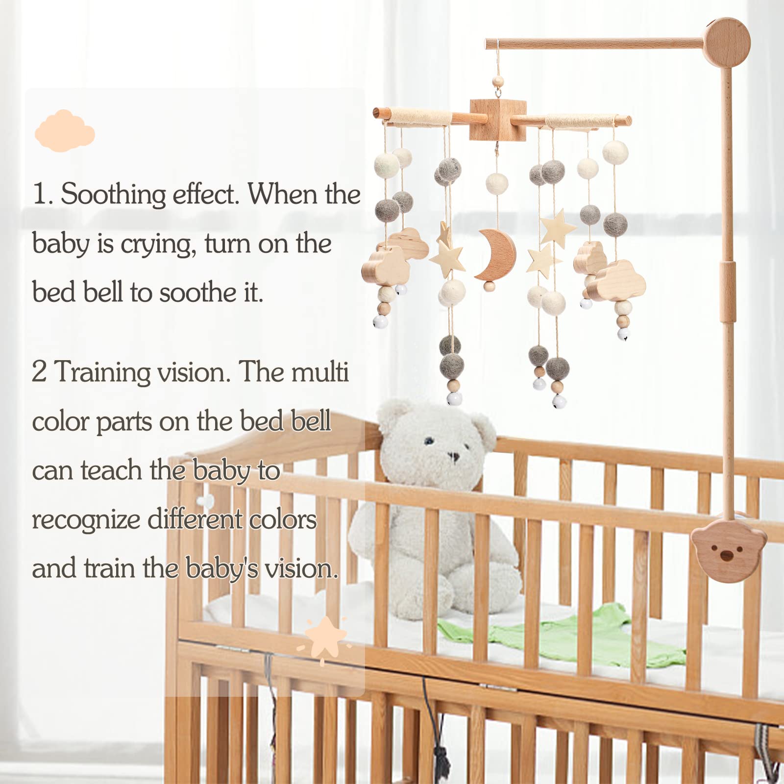 - SUITABLE OCCASIONS - Bassinet Mobile Attachment, Fabric Mobile For Crib, Baby Car Seats, Baby Carriages, Shakers, And Crib Decoration. The baby crib mobile will also develop your little one's focus, vision and depth perception as well.