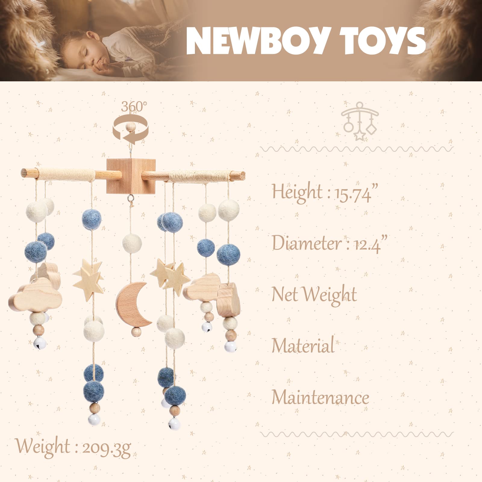 - CUTE NURSERY DECOR - Featuring a beautiful Starry Night theme with lovely boho chic colors, this baby crib mobile for boys and girls will nicely compliment any nursery decor, adding a modern and cute touch to your little one’s space.