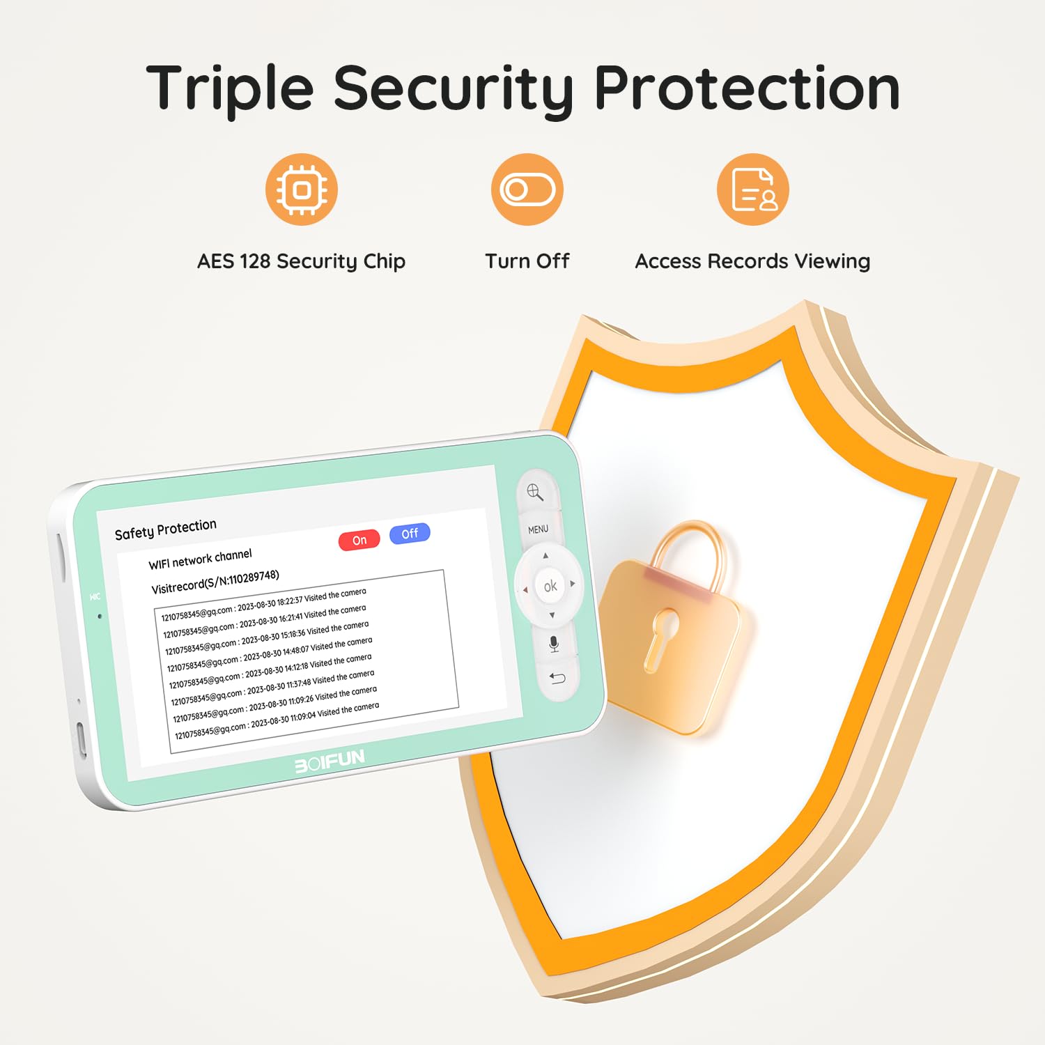 - 【Multifunctional Security & 24/7 Monitoring】BOIFUN baby monitor also supports customizing alarm area, two-way audio, screen capture & recording, video playback, 300m signal coverage, memory card & cloud storage, multi-user sharing, AES128 encryption technology, feeding reminder and temperature & humidity detection.